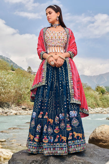 Fabulous Georgette Fabric Teal Color Sequins Embroidered Lehenga