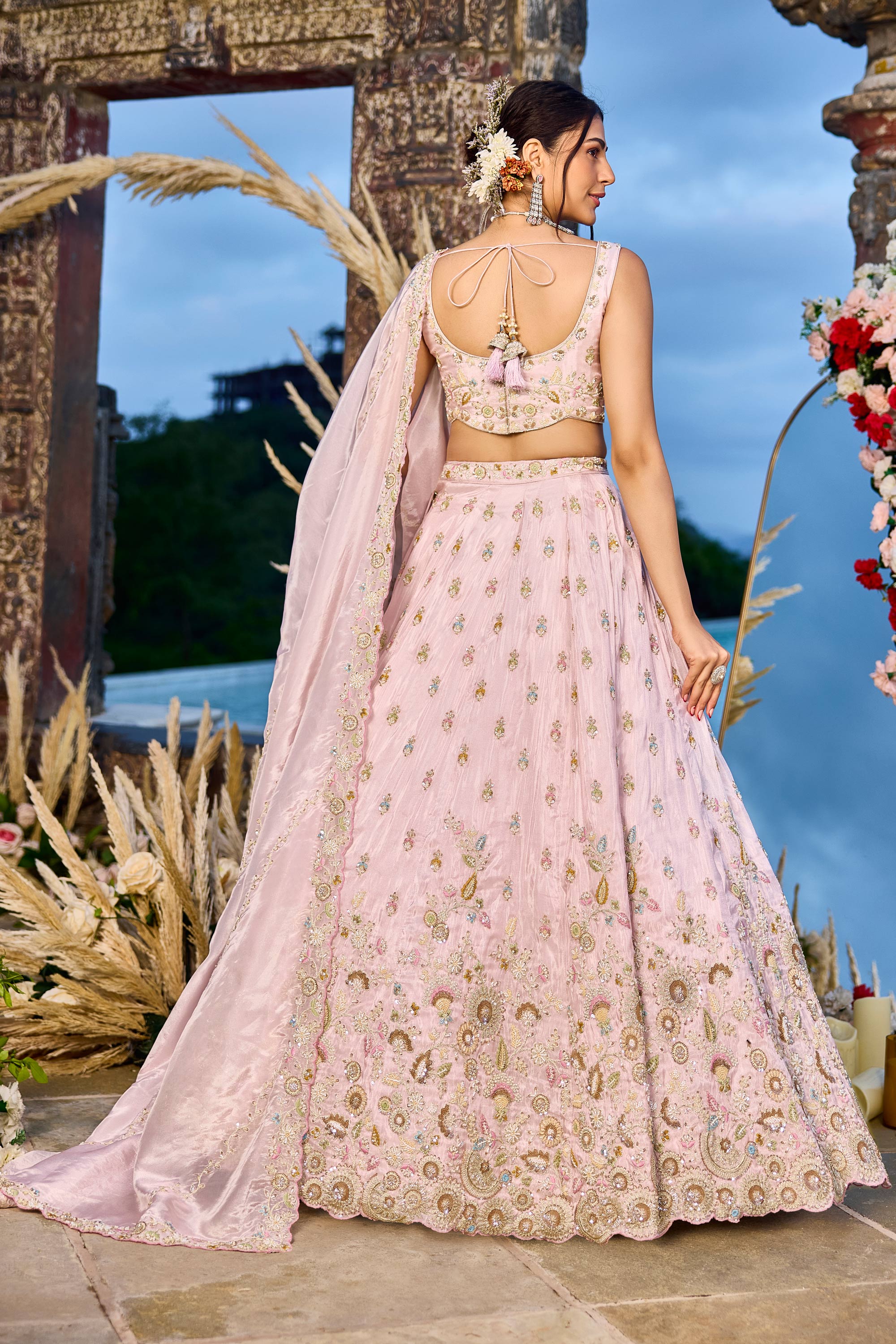 Gorgeous Tissue Pink Wedding Wear Lehenga Choli