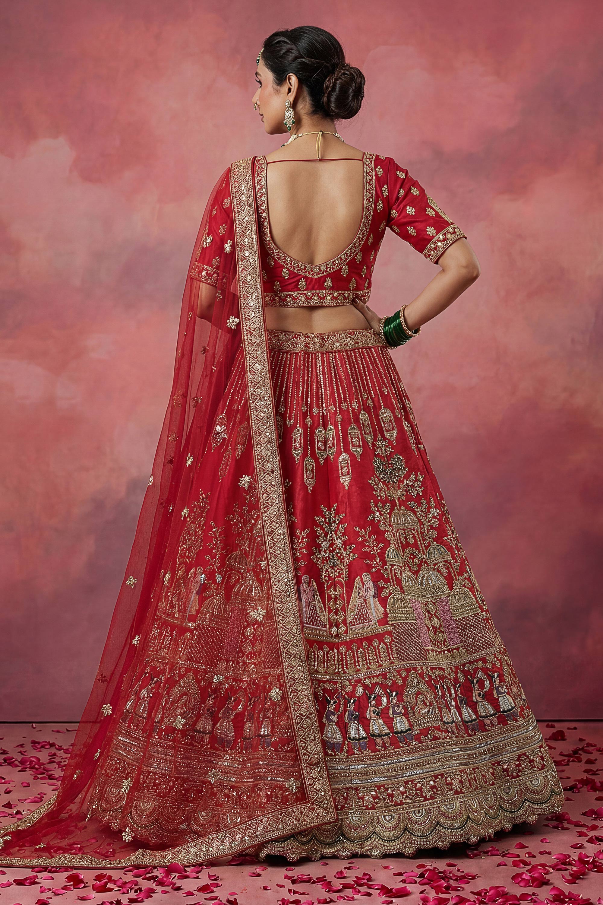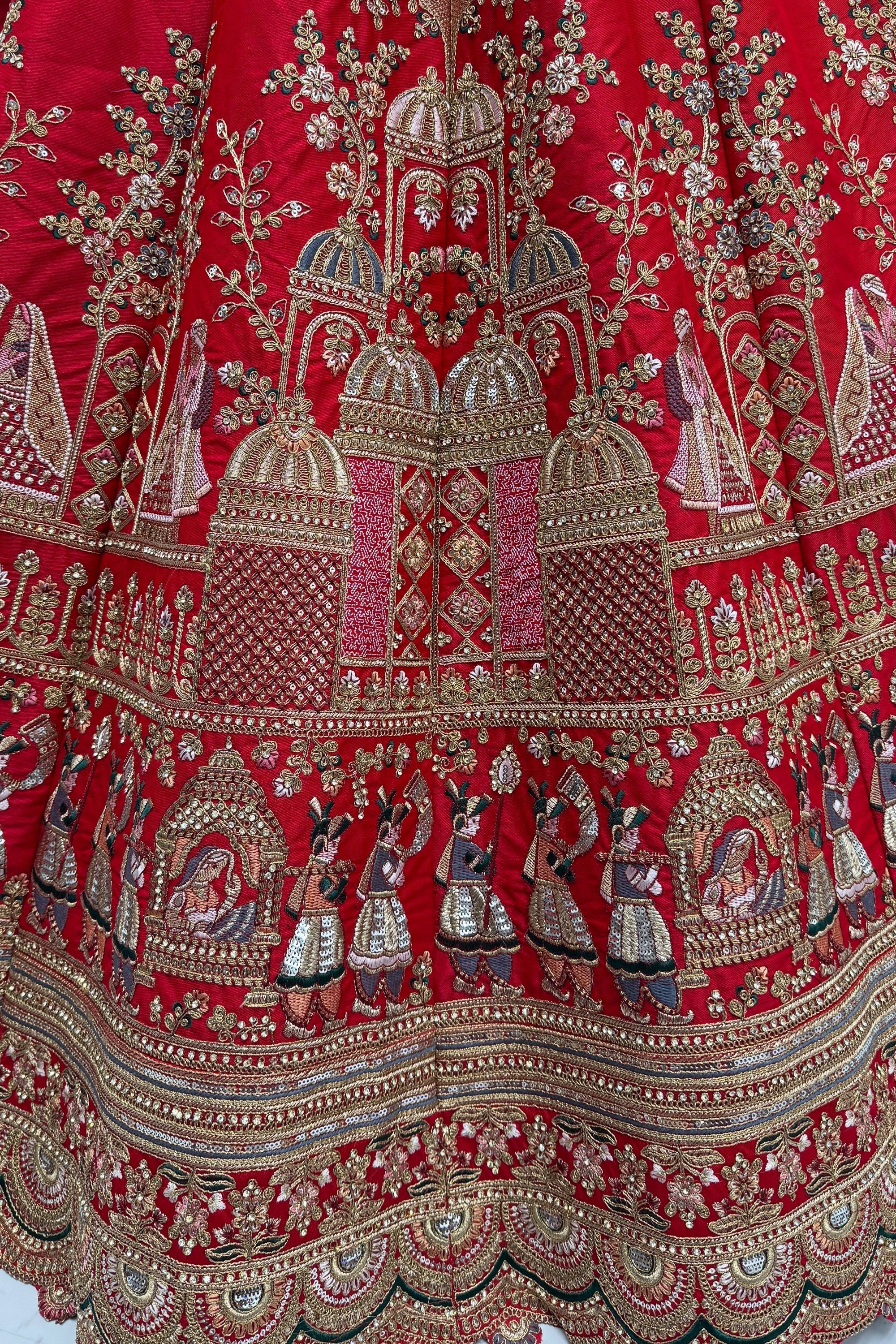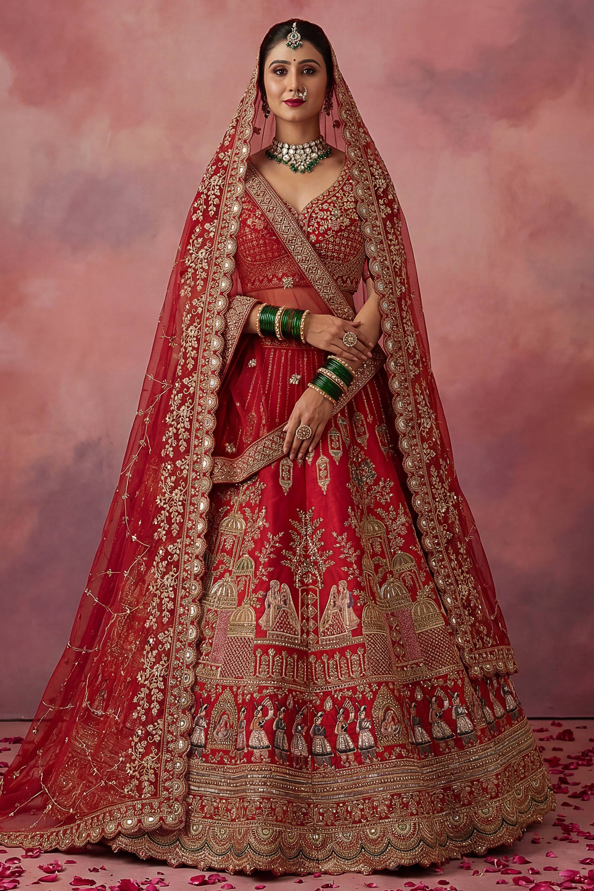 Graceful Heavy Embroidered Red Bridal Lehenga Choli In Silk Fabric