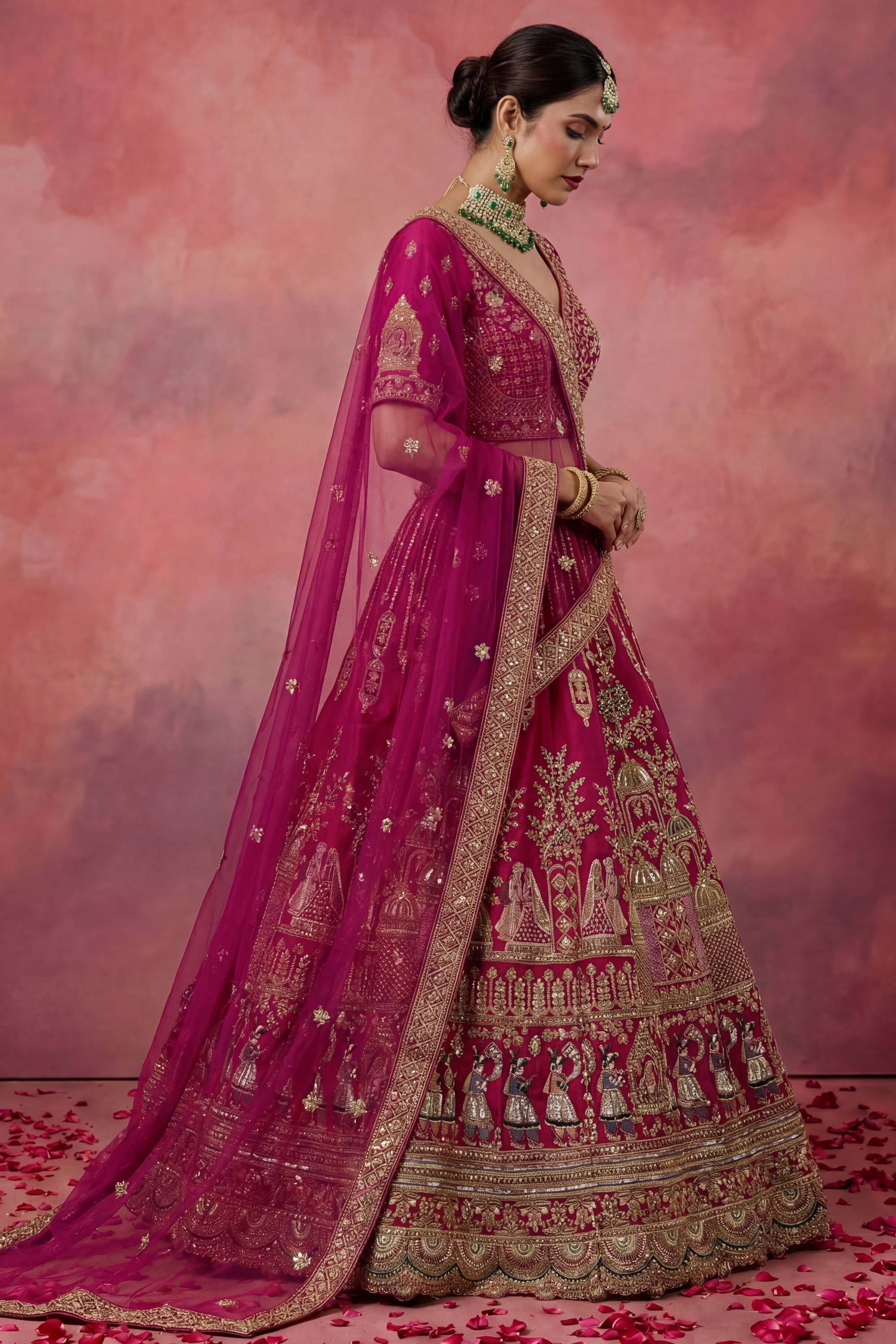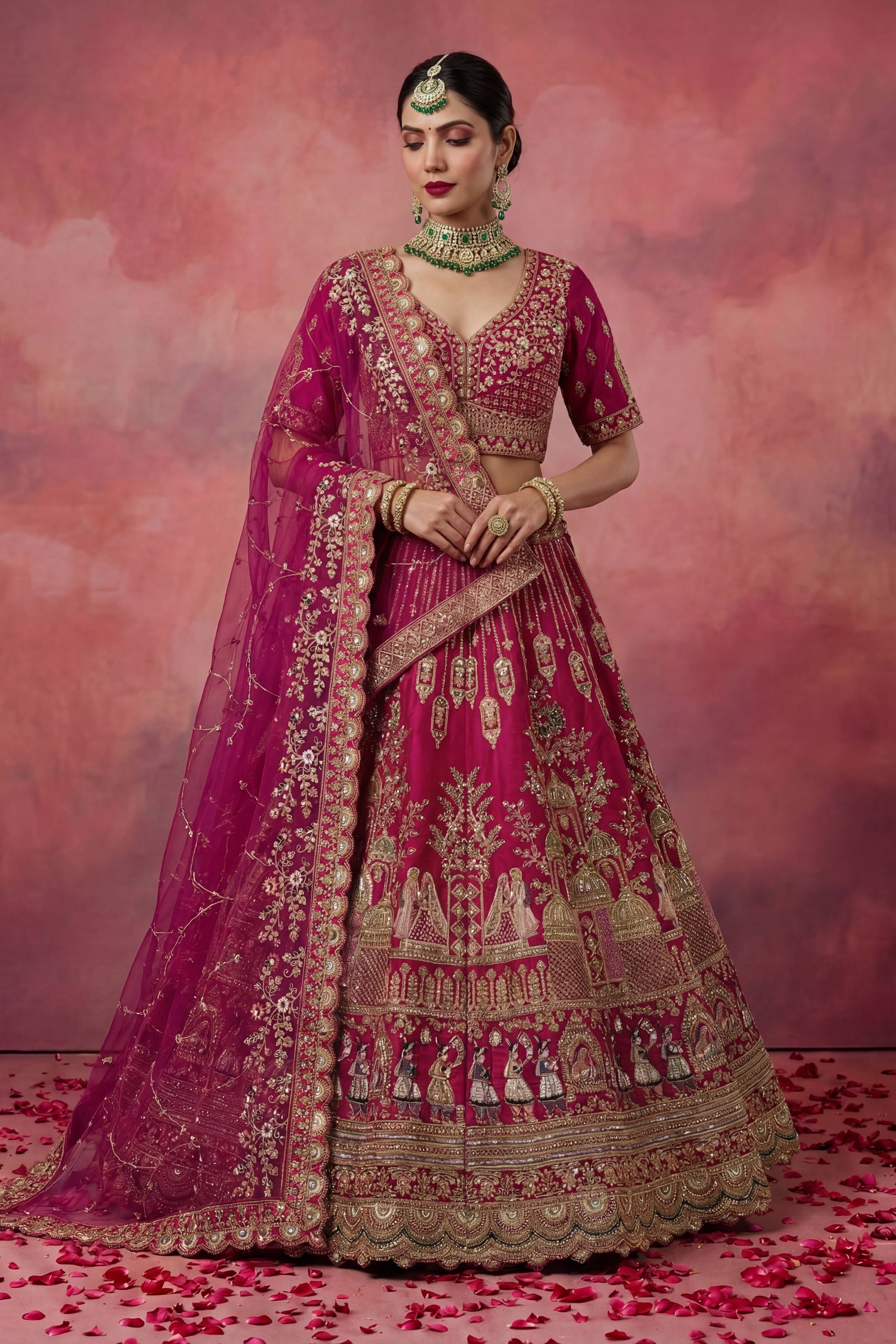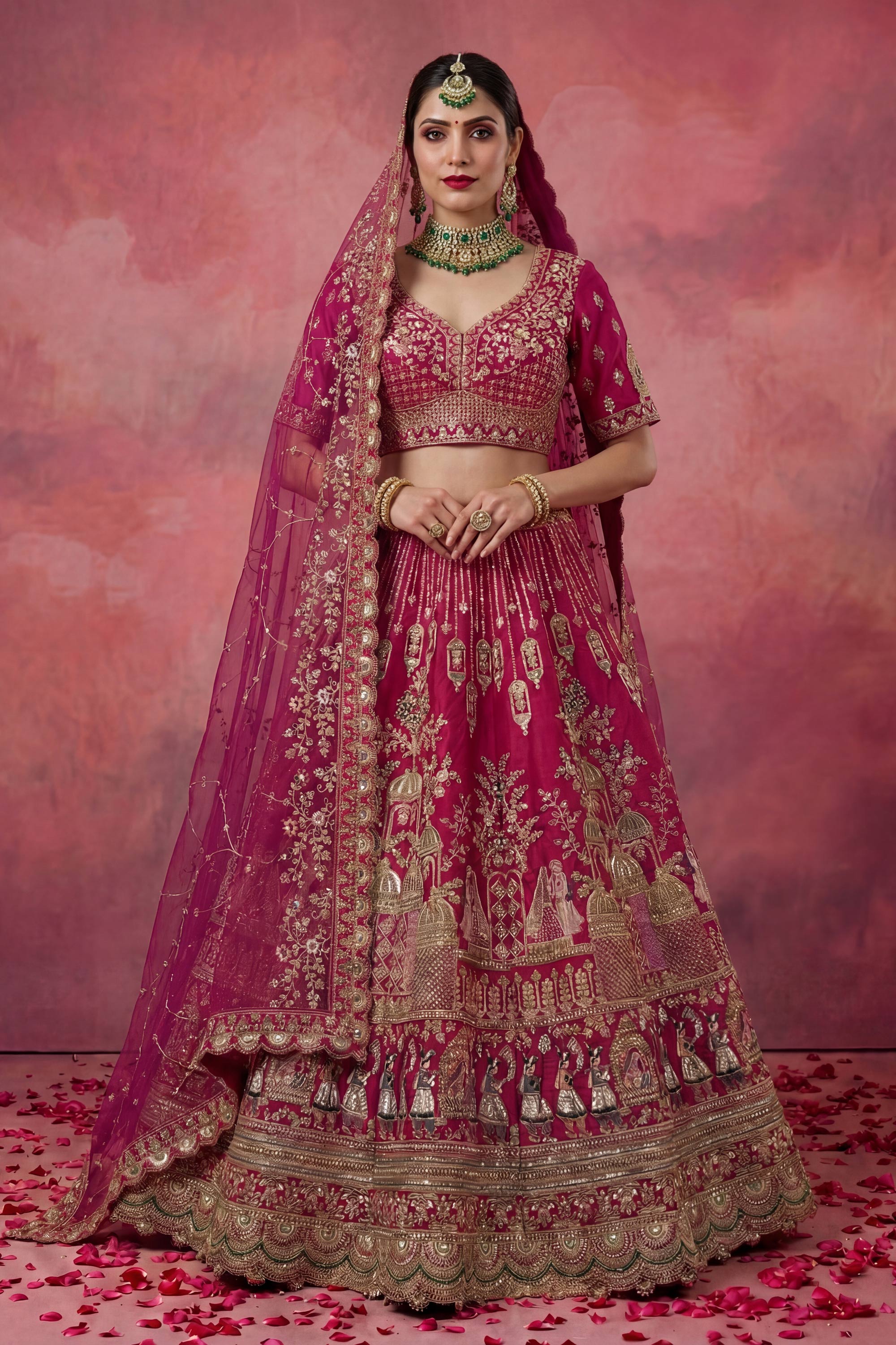 Heavy Embroidered Bridal Lehenga Choli In Magenta Color