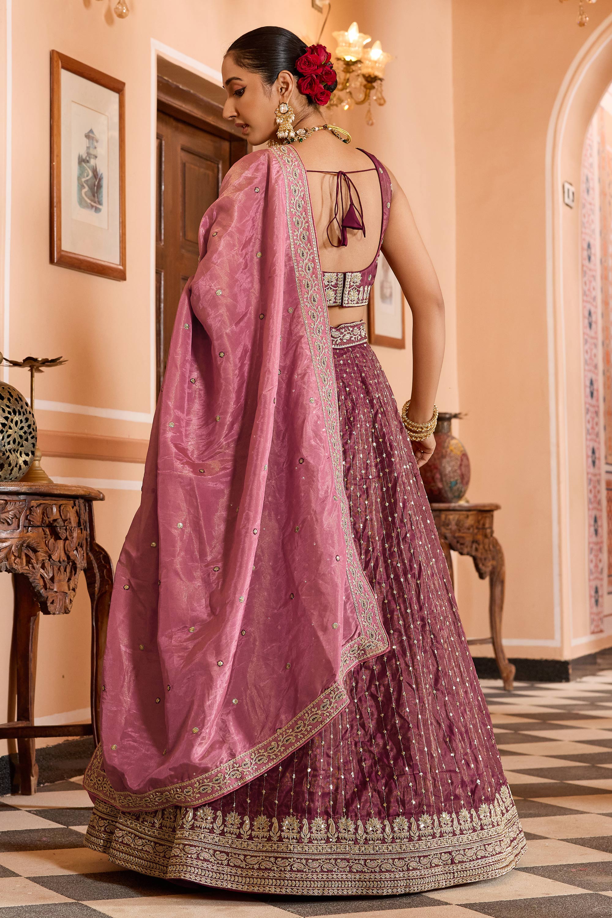 Heavy Embroidered Wedding Wear Lehenga Choi In Wine Color