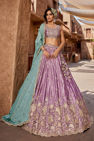 Lavender Color Heavy Embroidered On Satin Fabric Beatific Wedding Wear Lehenga Choli