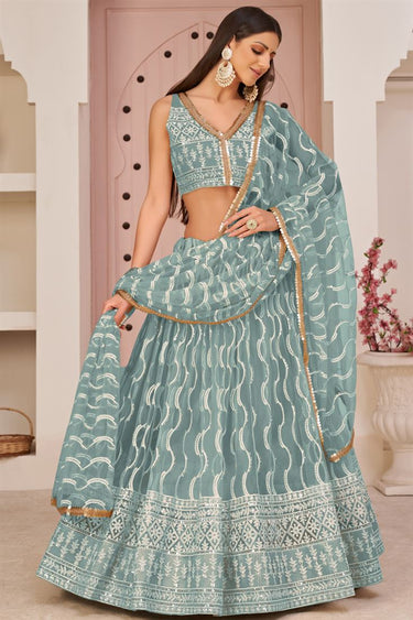Light Cyan Color Fantastic Net Lehenga In Sangeet Wear