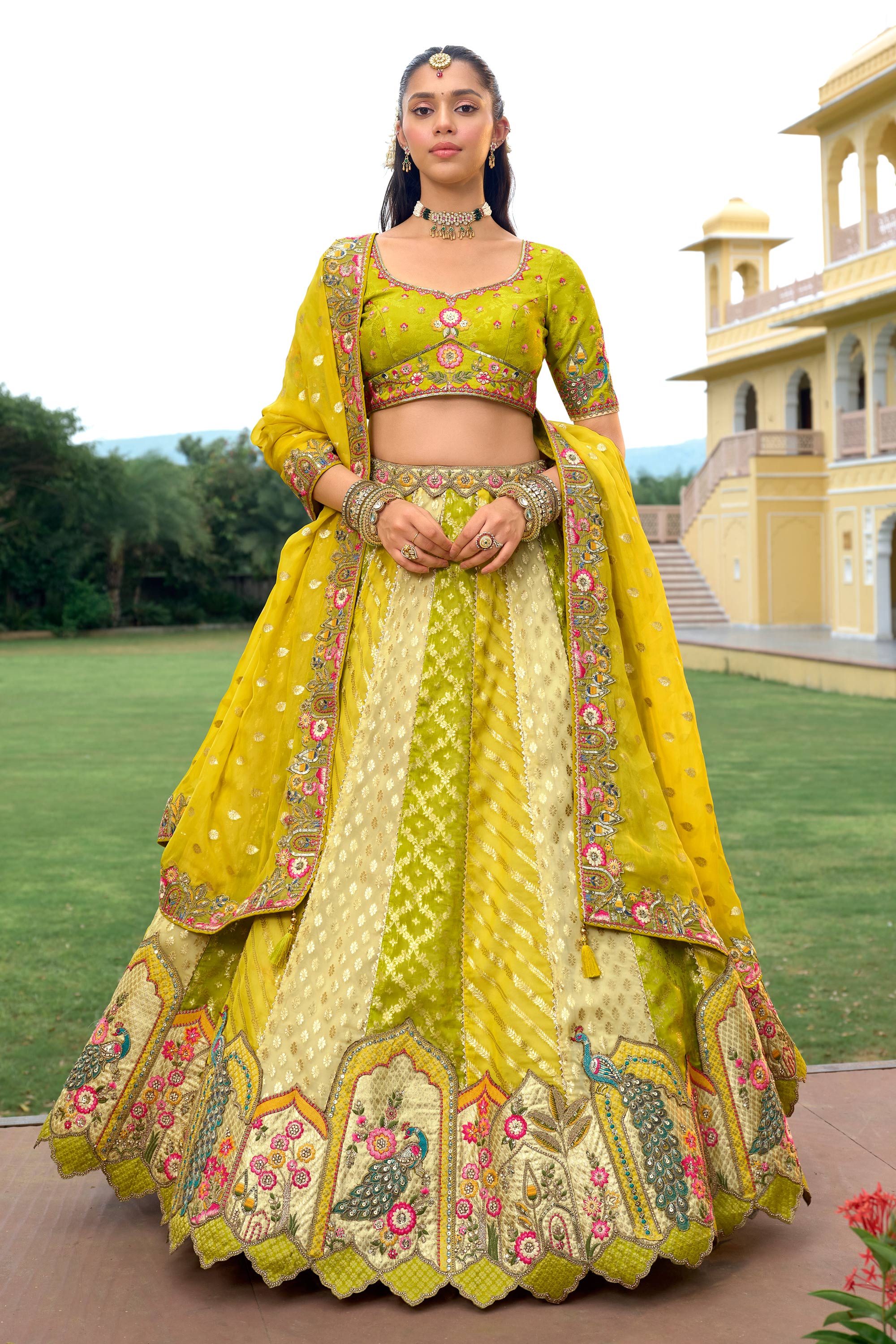 Lovely Heavy Embroidered Wedding Lehenga Choli In Green Color