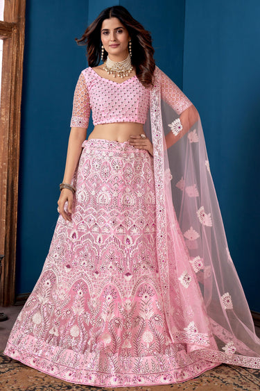 Pink Color Net Fabric Lehenga Choli With Embroidery Work