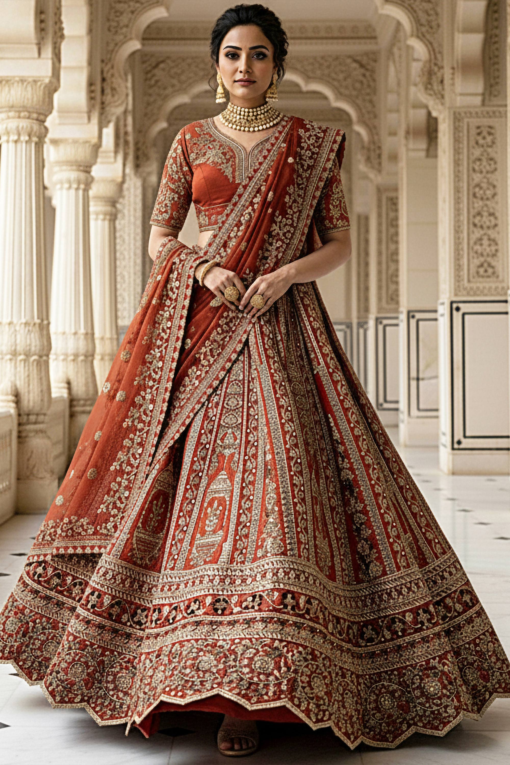 Celebrate love and tradition in this designer silk bridal lehenga choli. Featuring luxurious silk fabric and fine embroidery, this bridal ensemble is thoughtfully crafted for sophistication and elegance. The flattering cut and intricate design work together to provide a graceful, stunning look. Comfortable yet eye-catching, it perfectly complements the joy of a wedding day. The artistry of the embroidery enhances its overall charm, making it a standout outfit for brides who value beauty and tradition. Suitable for weddings, receptions, or special events, this outfit brings the perfect blend of classic style and modern comfort.