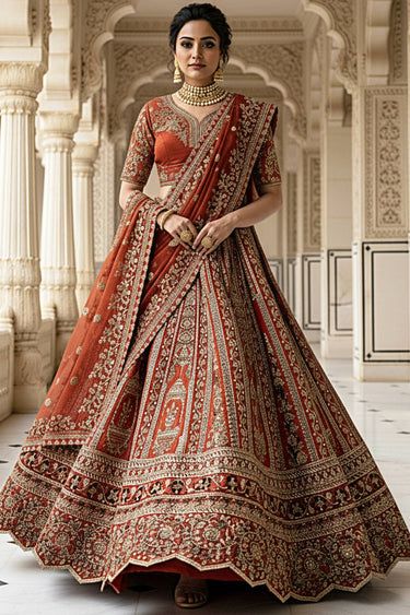 Pretty Heavy Embroidered Bridal Lehenga Choli In Silk Fabric