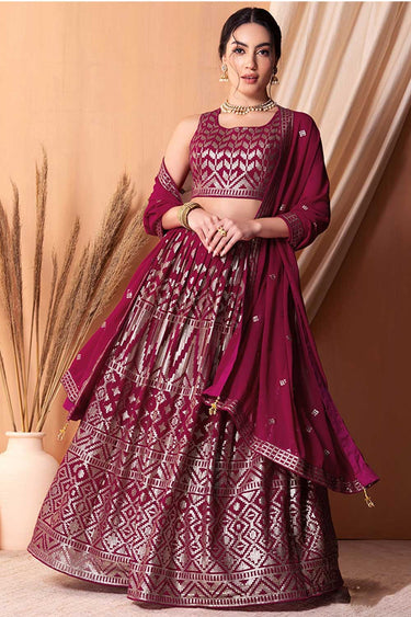 Ravishing Sequins Designs Georgette Lehenga In Magenta Color