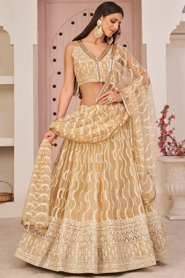 Sangeet Wear Captivating Net Lehenga In Beige Color
