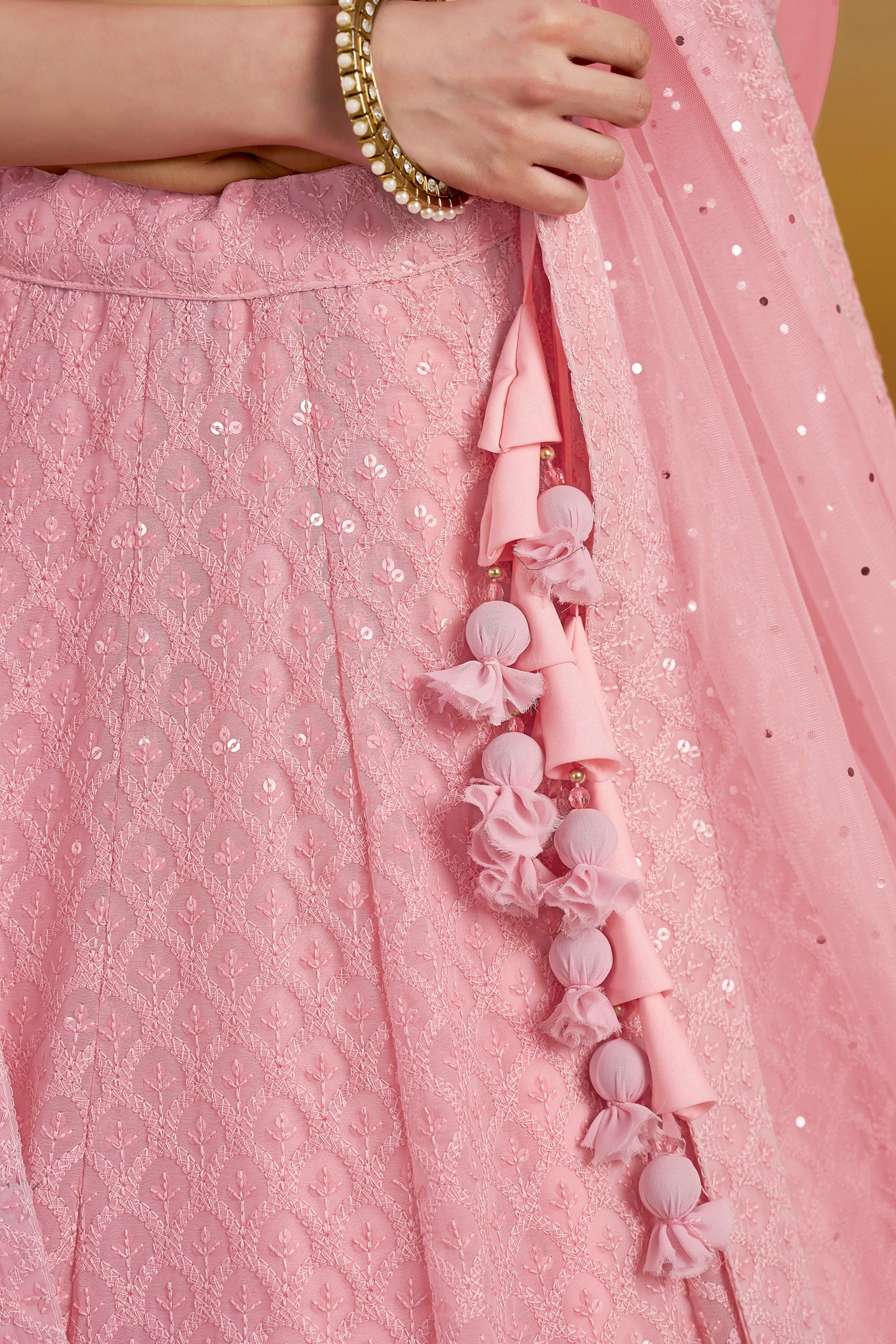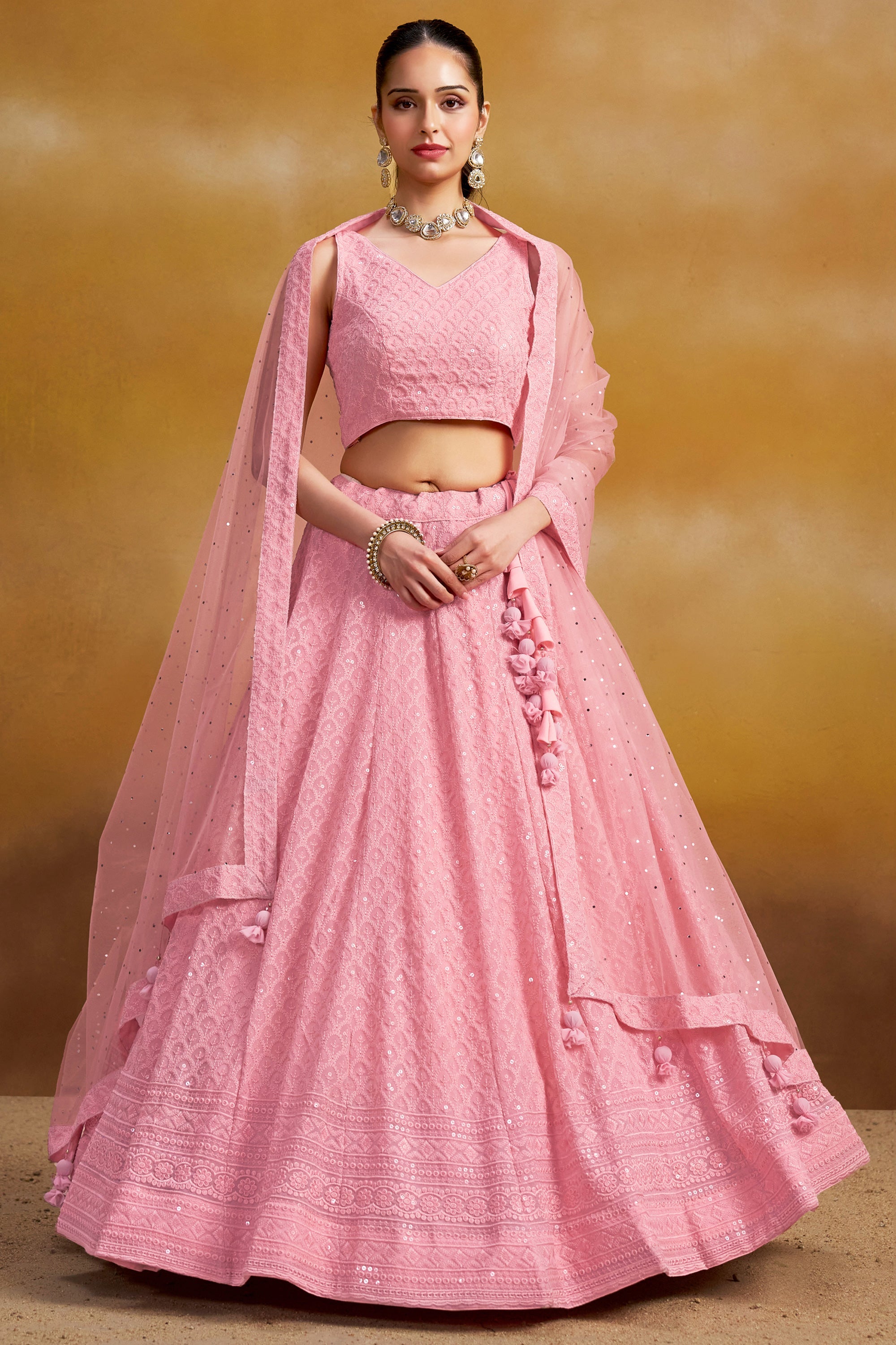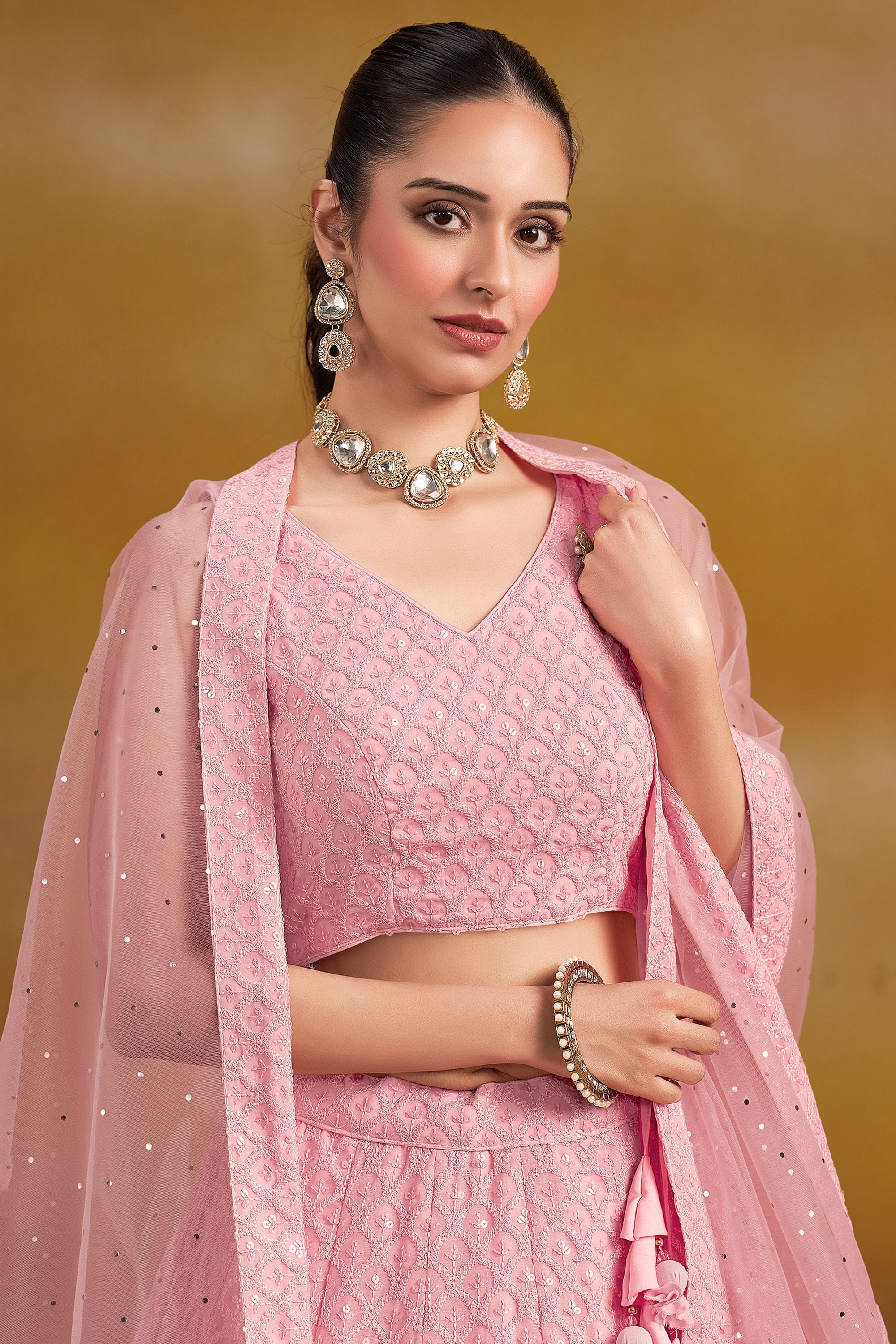 Sequins Work Pink Lehenga In Georgette With Designer Choli