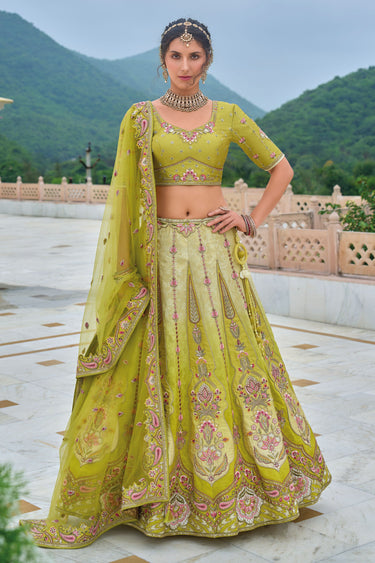 Silk Symphony Bridal Lehenga Choli In Green Color