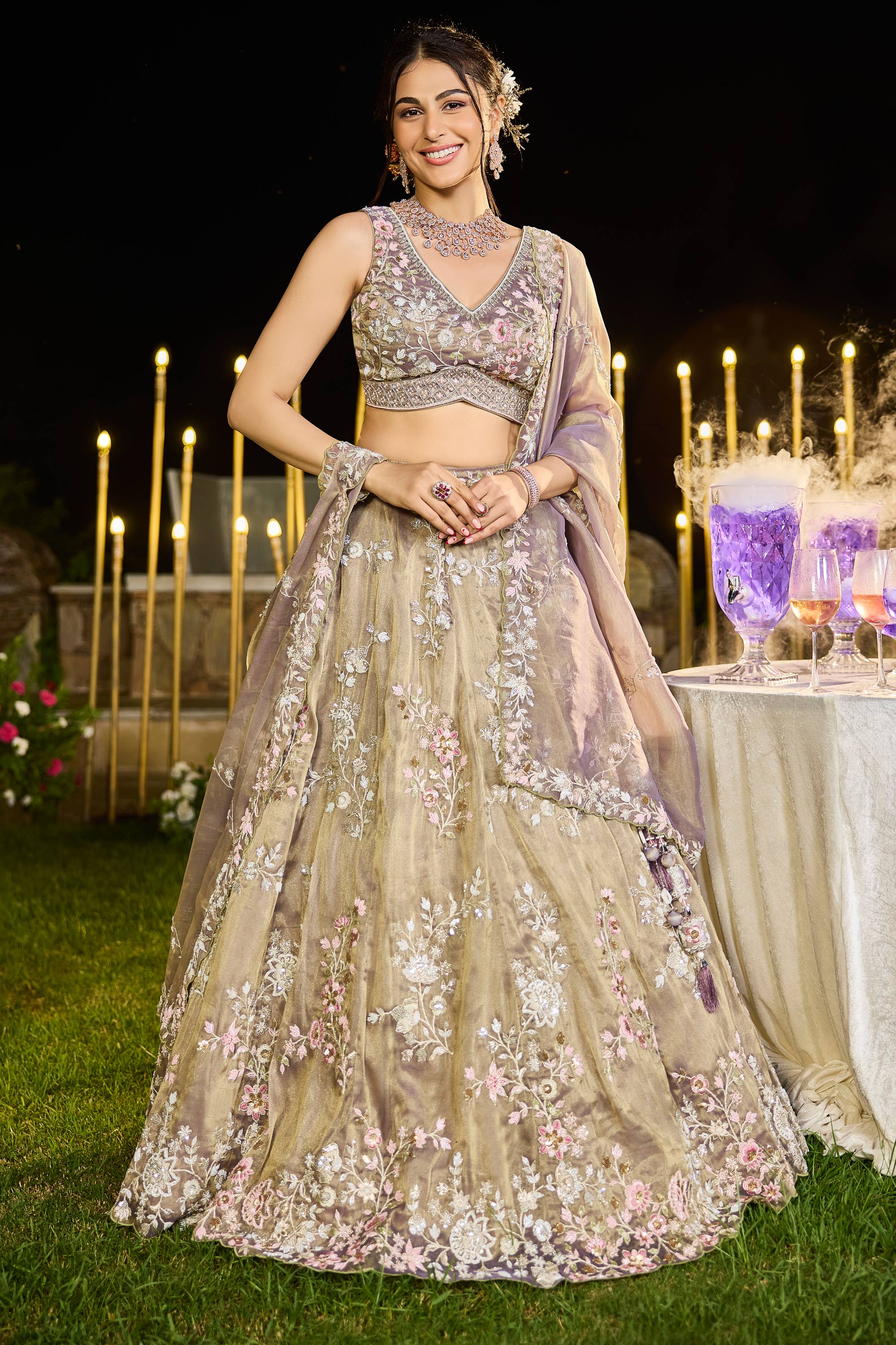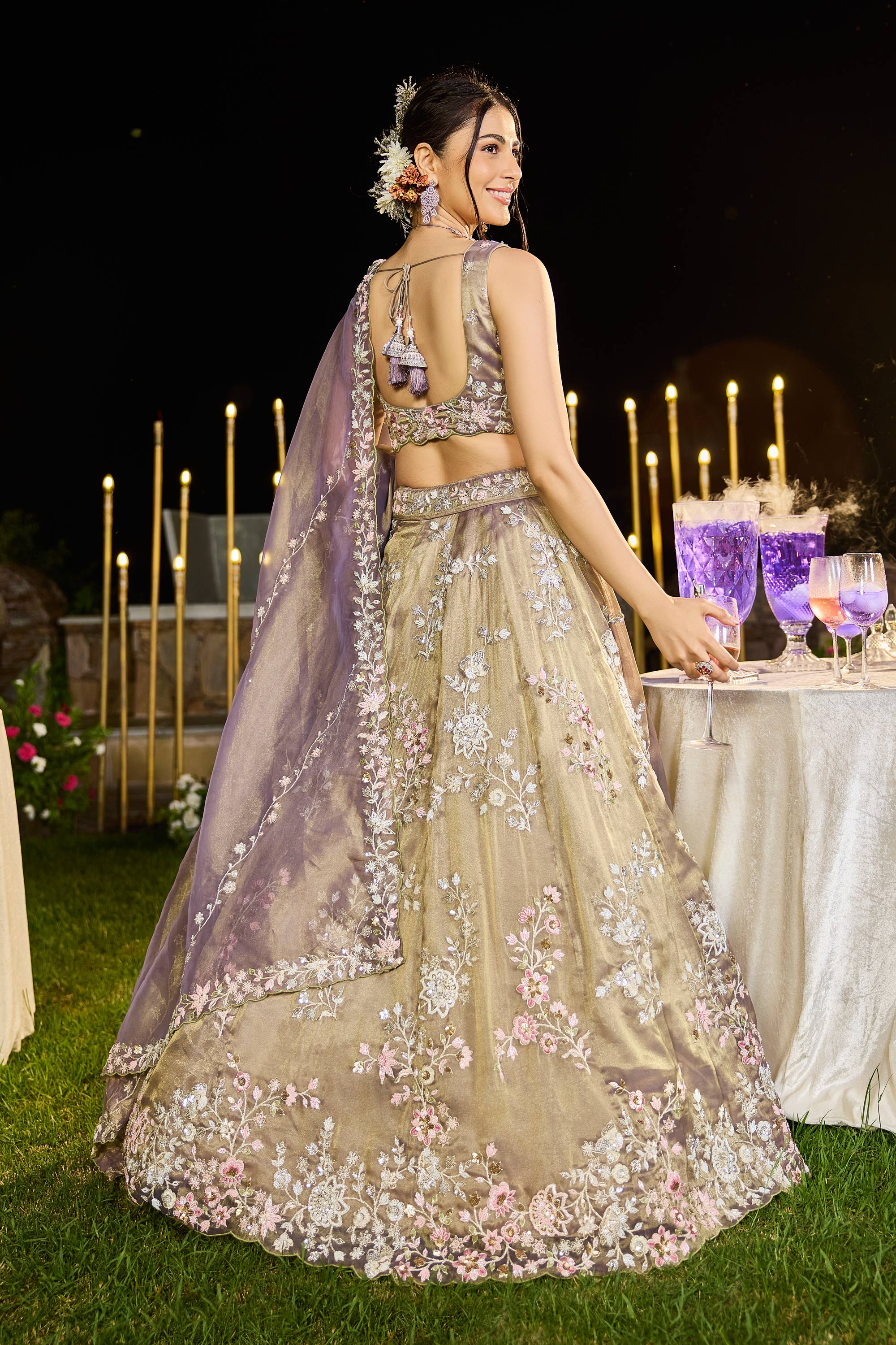 Stunning Lavender Tissue Heavy Embroidered Wedding Wear Lehenga Choli