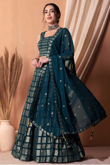 Teal Color Alluring Sequins Designs Georgette Lehenga Choli