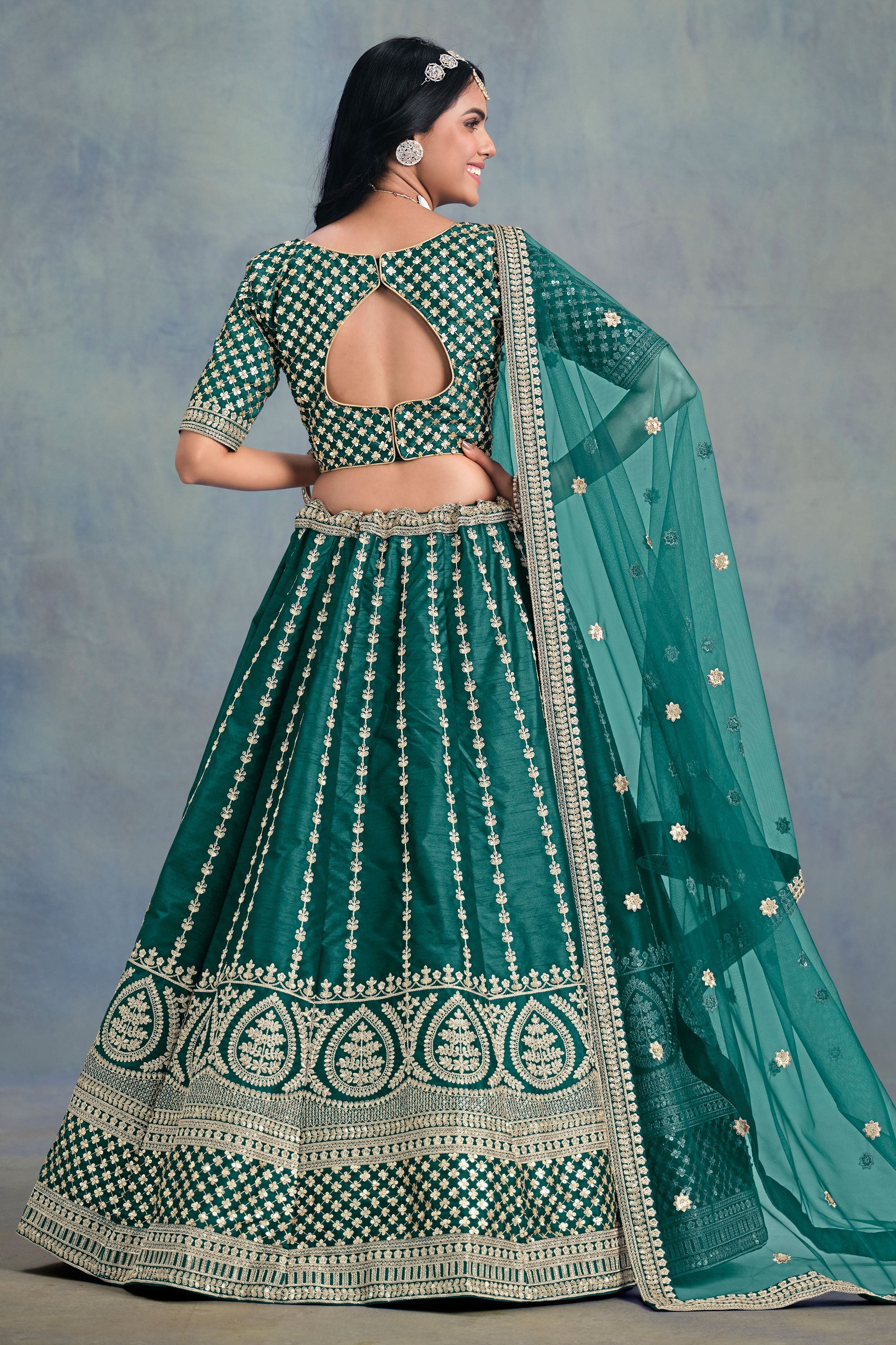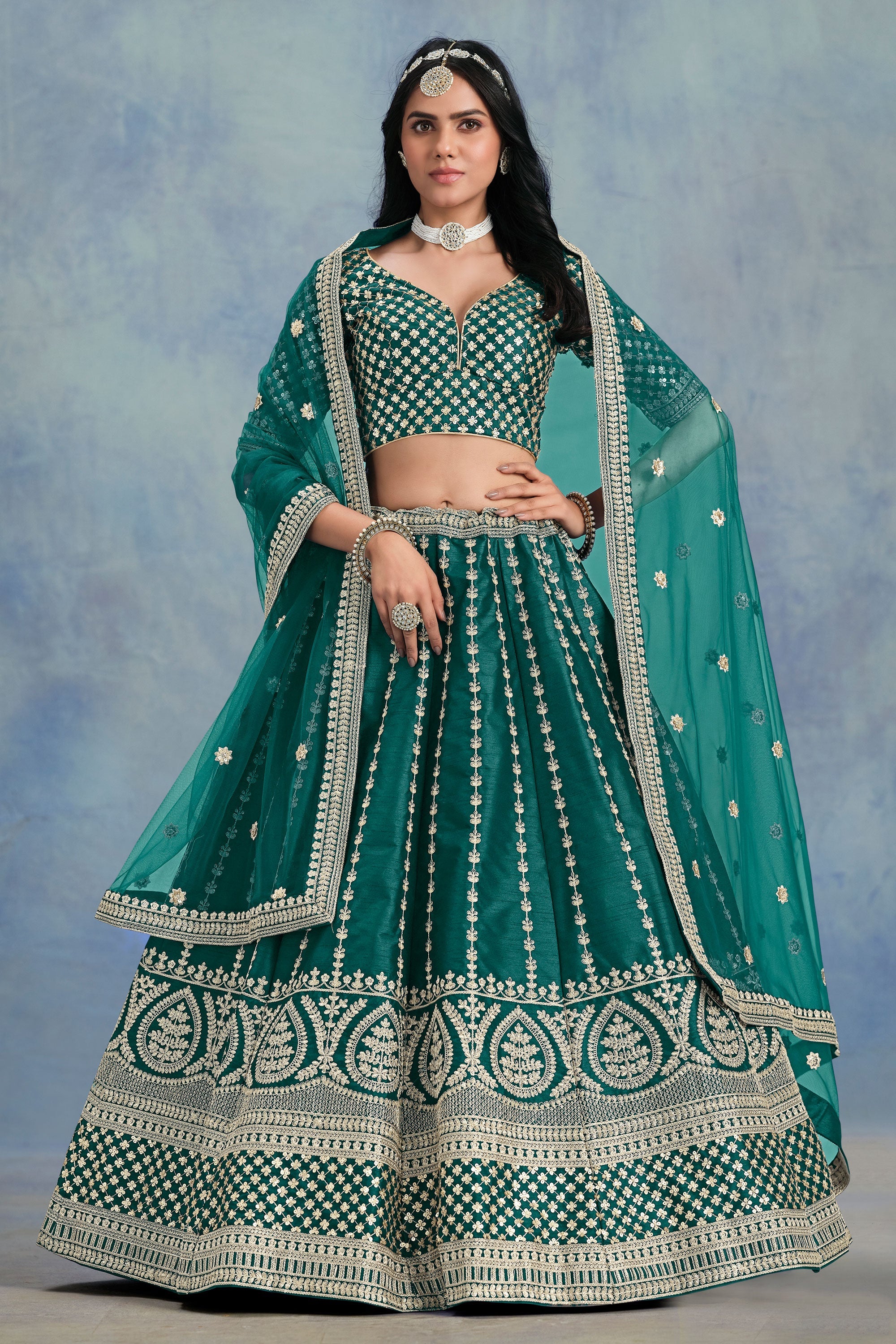Teal Sangeet Wear Designer Embroidered Art Silk Lehenga Choli