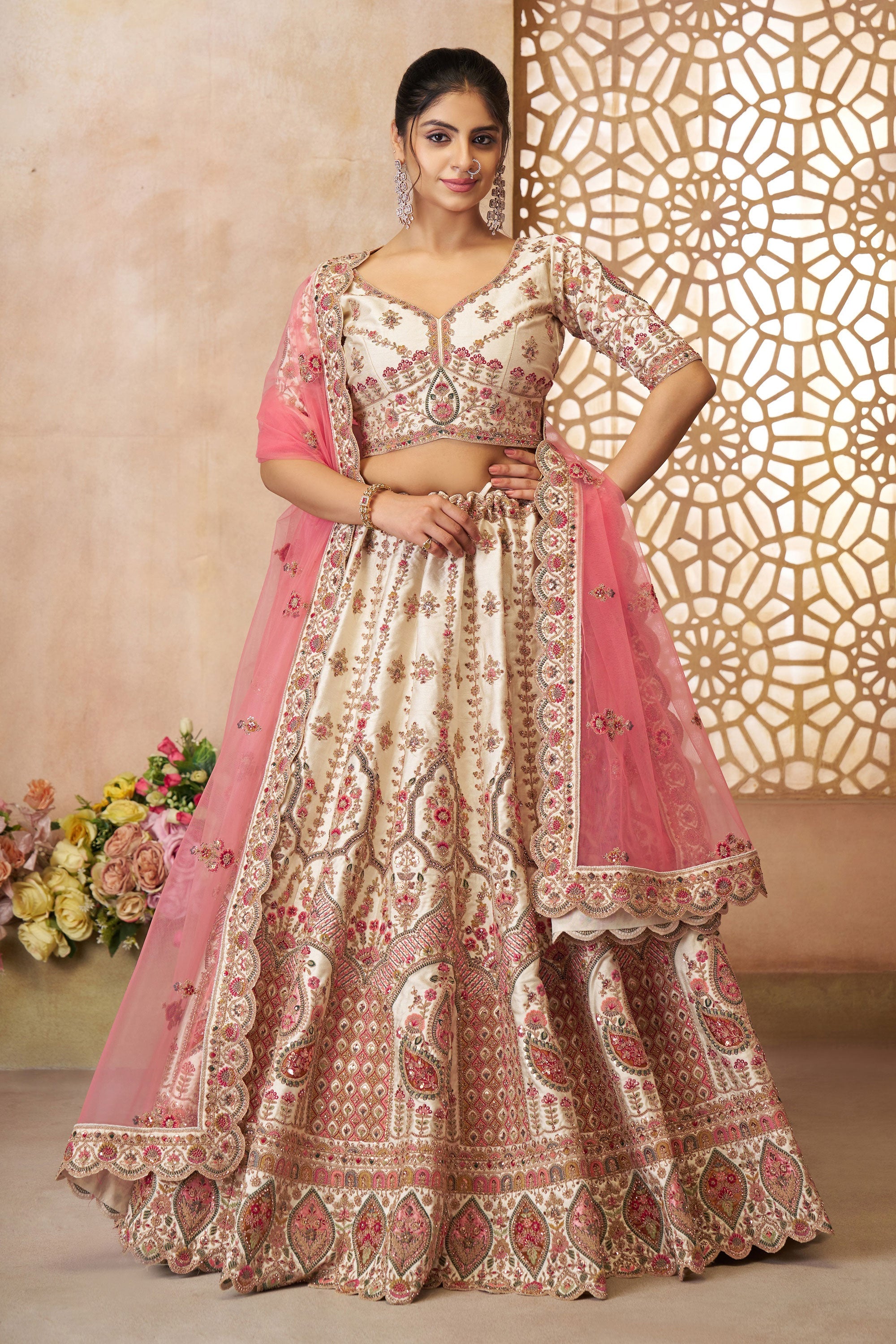 Wedding Wear Lehenga Choli In Beige Silk Fabric
