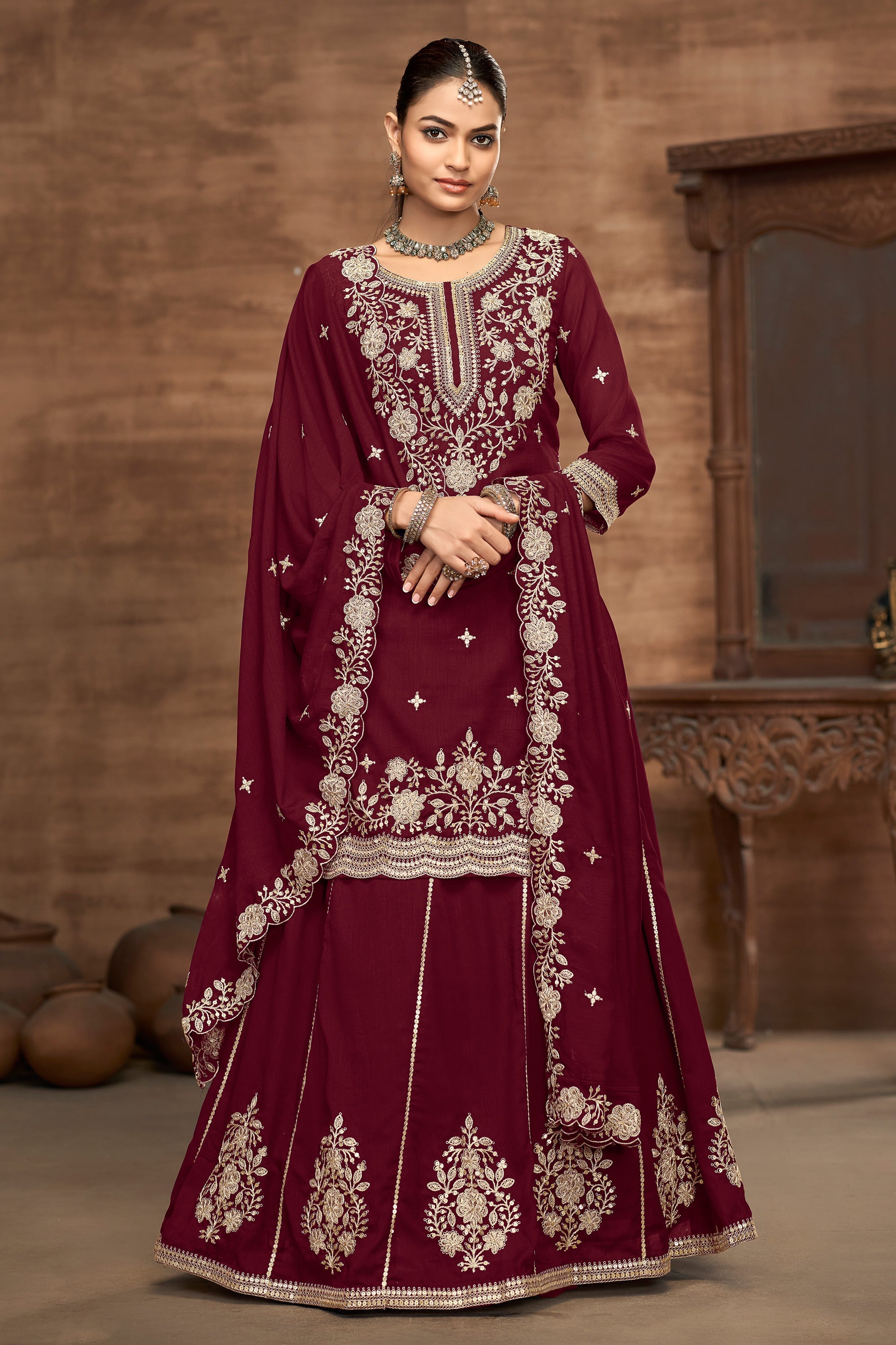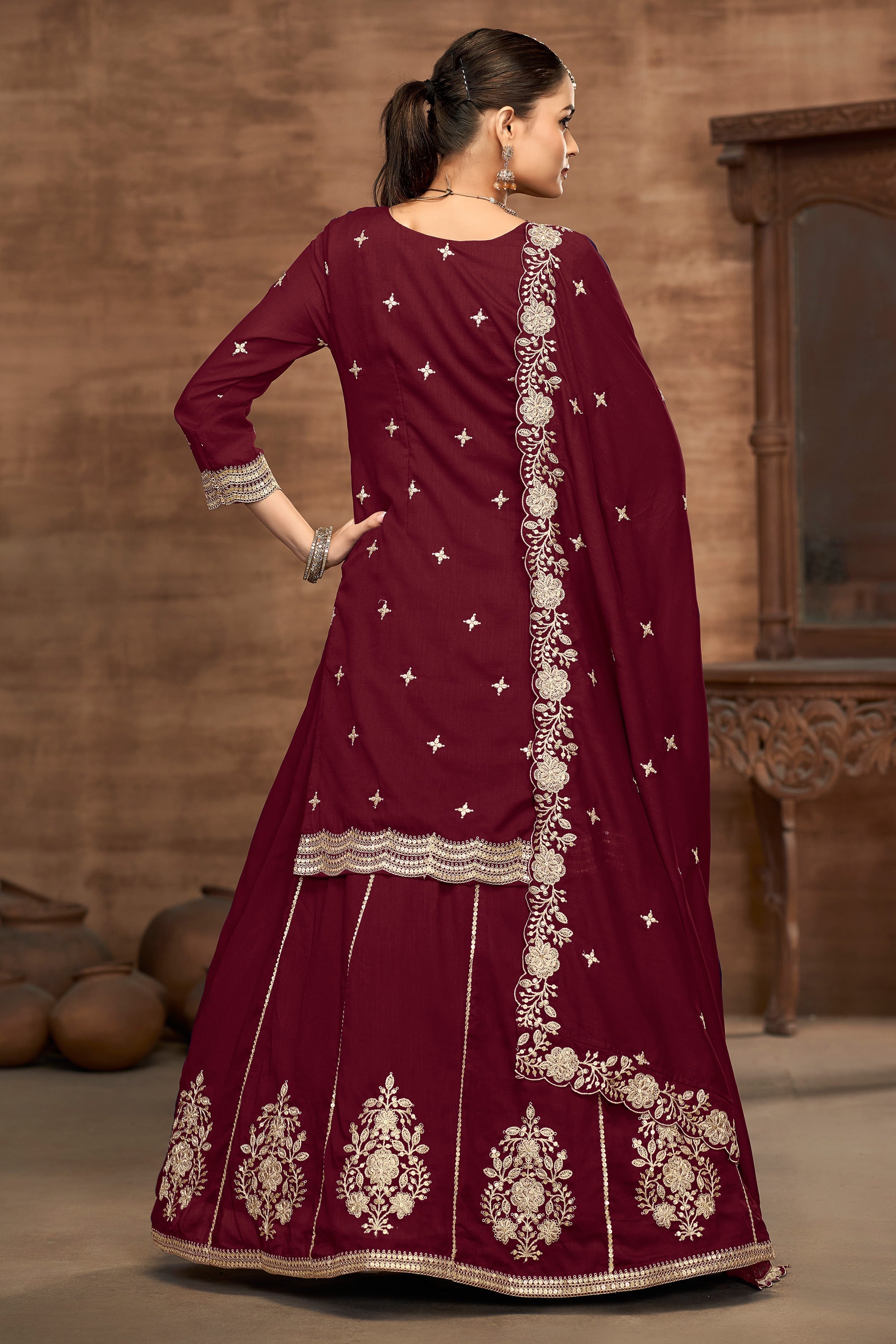 Maroon Sangeet Wear Readymade Sharara Style Lehenga