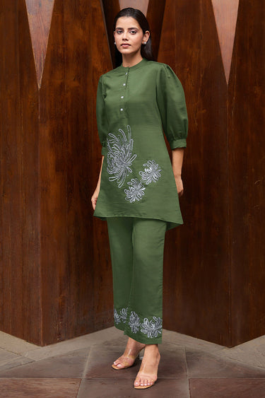 Exclusive Green Embroidered Viscose Tunic With Pant