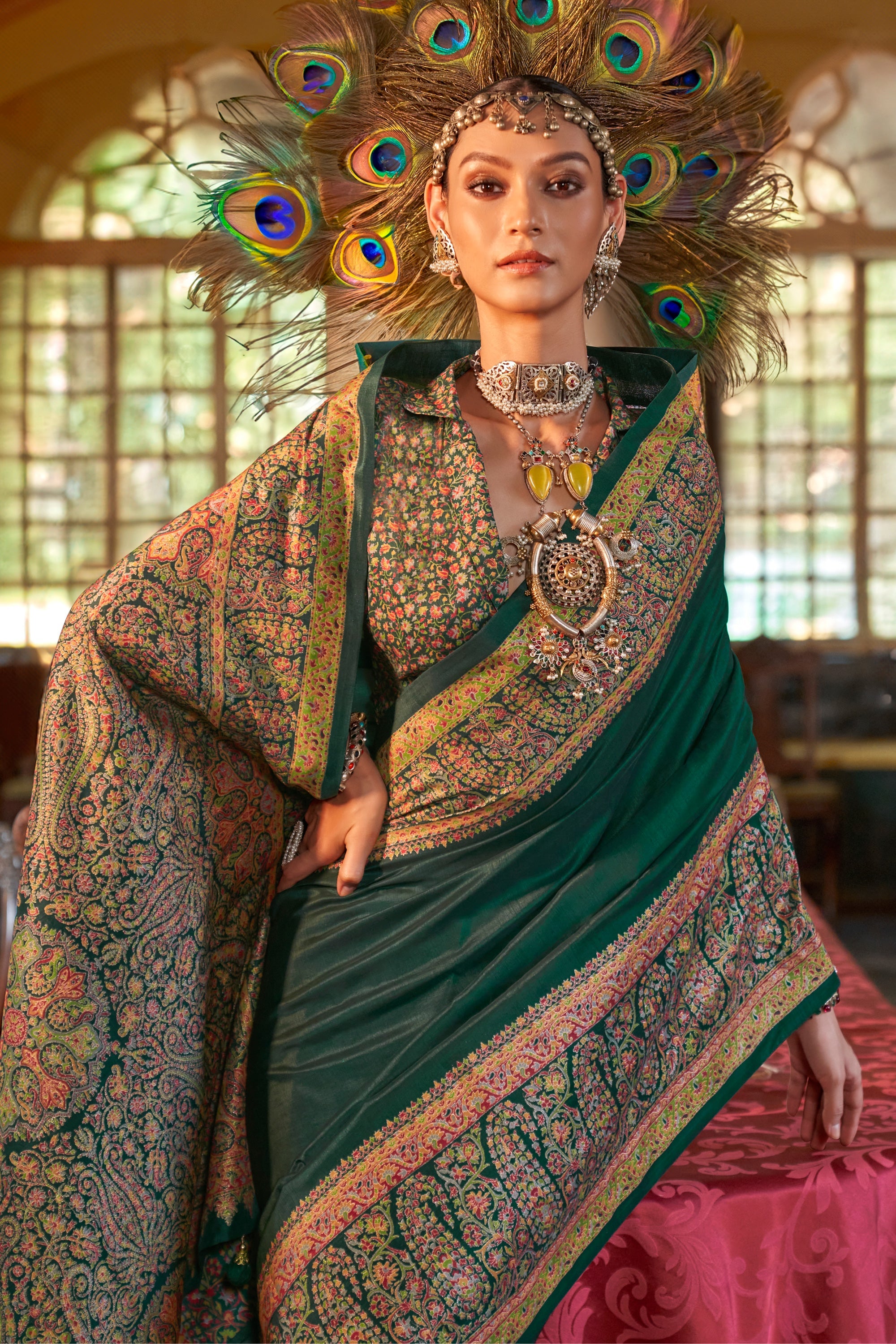 Art Silk Printed Saree In Green Color