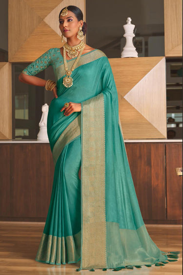 Sea Green Color Art Silk Fabric Festive Wear Lovely Saree
