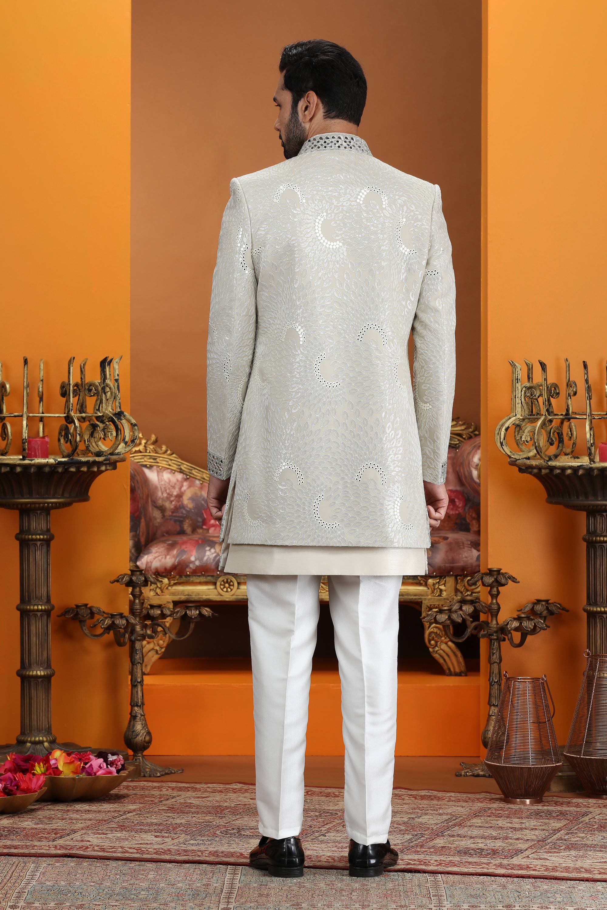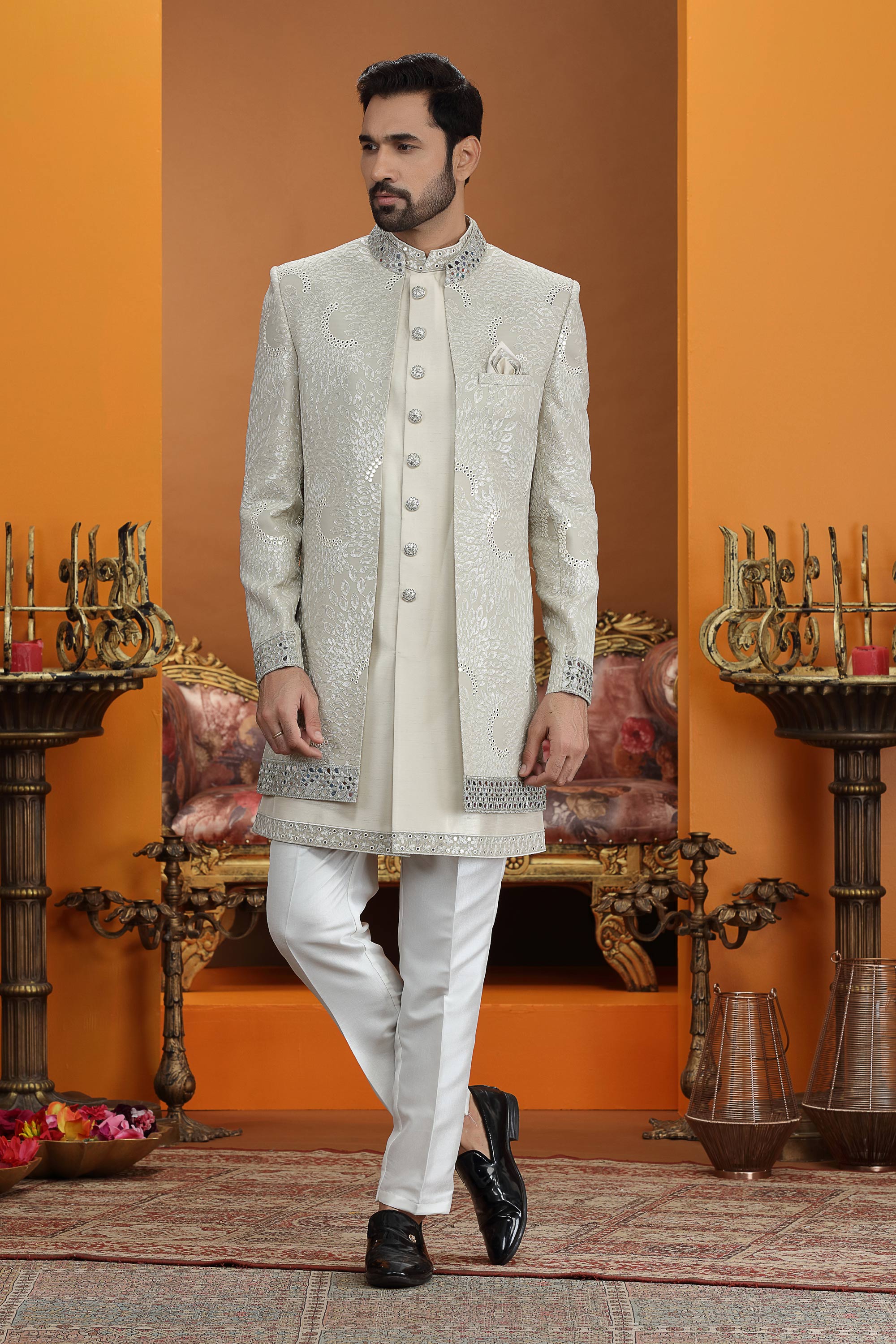 Art Silk Fabric Beige Readymade Indo Western For Wedding Wear