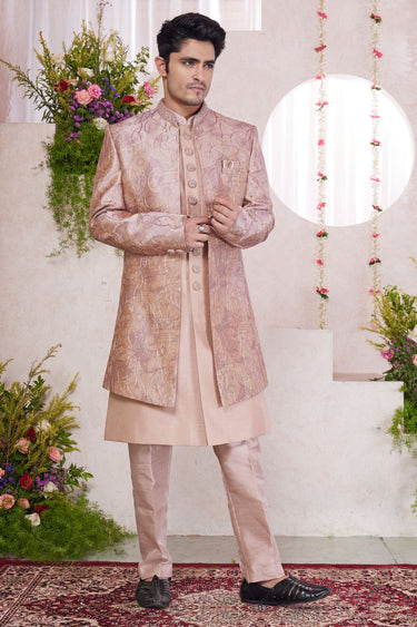 Silk Stunning Pink Wedding Wear Readymade Men Indo Western