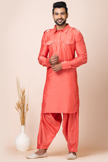 Artistic Viscose Fabric Peach Color Pathani Kurta Pyjama Set For Function