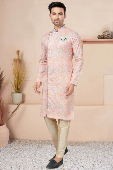 Attractive Printed Readymade Men Indo Western In Pink Color
