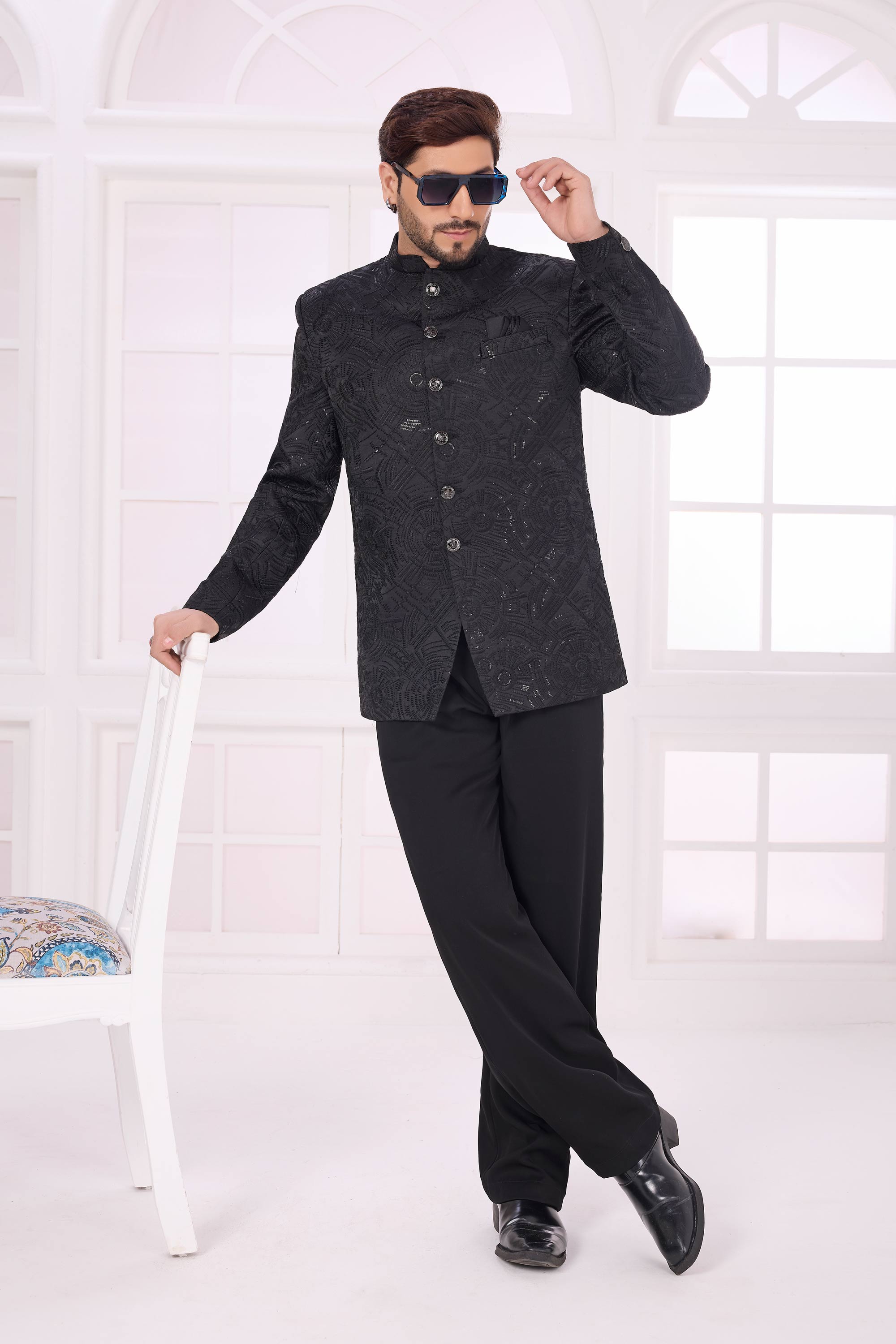 This Jodhpuri-style blazer features exquisite embroidery work that reflects traditional craftsmanship with a modern touch. The faux satin lining provides added comfort and a smooth feel, ensuring you look confident and graceful throughout the celebration. Note: Due to digital photography, slight color variations may occur.
