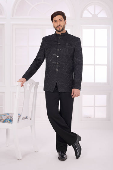 Black Velvet Fabric Readymade Jodhpuri Jacket For Wedding Wear