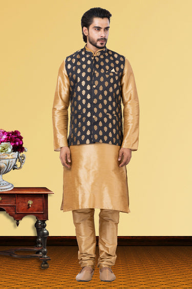 Dhupion Raw Silk Beautiful Cream Wedding Wear Readymade Kurta Pyjama For Men With Jacket