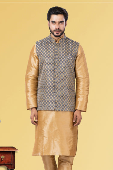 Jacquard Silk Fabric Function Wear Readymade Grey Jacket For Men