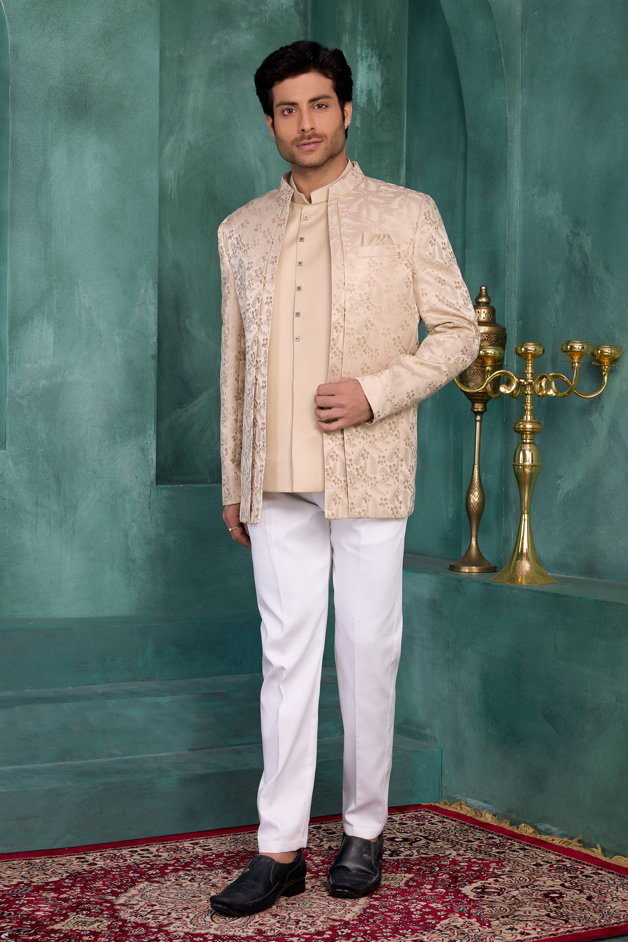 This Jodhpuri-style blazer features exquisite embroidery work that reflects traditional craftsmanship with a modern touch. The faux satin lining provides added comfort and a smooth feel, ensuring you look confident and graceful throughout the celebration. Note: Due to digital photography, slight color variations may occur.