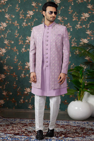 Lavender Color Art Silk Fabric Engrossing Wedding Wear 3 Piece Indo Western