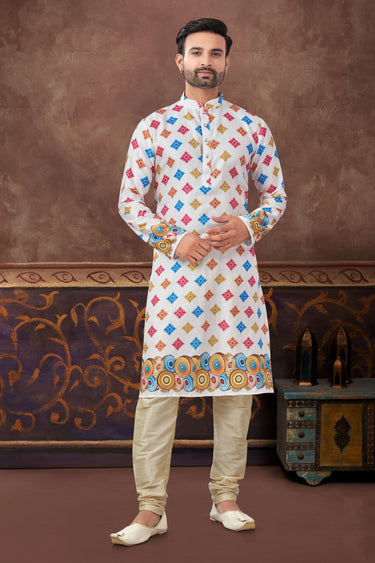 Elevate your festive look with the Elegance Embellished Reach Color Diwali Special Long Readymade Kurta Pyjama Set for Men. Crafted from high-quality fabric, this set offers unmatched comfort and style. The intricate embellishments on the kurta add a touch of sophistication, making it perfect for Diwali celebrations or any traditional event. The accompanying pyjama complements the kurta perfectly, ensuring you look your best. Available in various sizes, this readymade set is designed for a hassle-free and elegant ethnic wear experience.