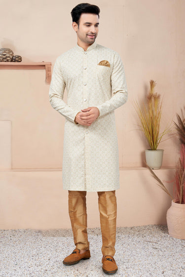 Printed Gorgeous Cotton Fabric Readymade Indo Western For Men