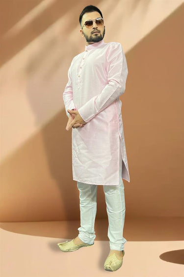 Silk Fabric Pink Color Readymade Kurta Pyjama For Men