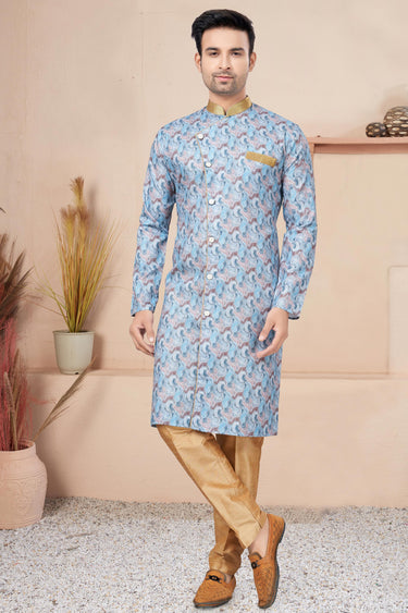 Add a dash of elegance to your style with this Readymade Printed Indo-Western Outfit for Men. It is made of high-quality cotton fabric which assures comfortable wear all day long. The beautiful printed pattern on it imparts an exquisite appearance that merges the traditional Indian and western style seamlessly. This clothing piece is a fantastic addition to your ethnic wardrobe!