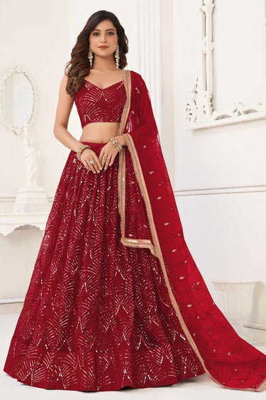 Elevate your style with this semi-stitched Designer Lehenga crafted from elegant net fabric. Featuring intricate embroidery on the lehenga, choli, and dupatta, it’s perfect for weddings and festive occasions. Note: Slight color variations may occur due to digital photography.