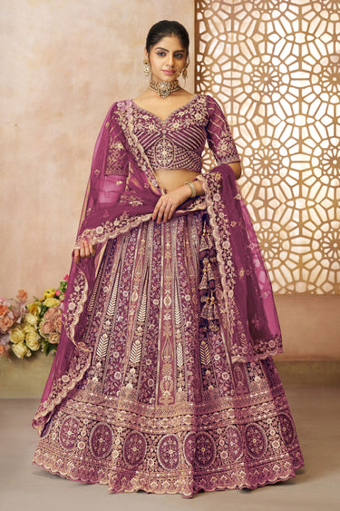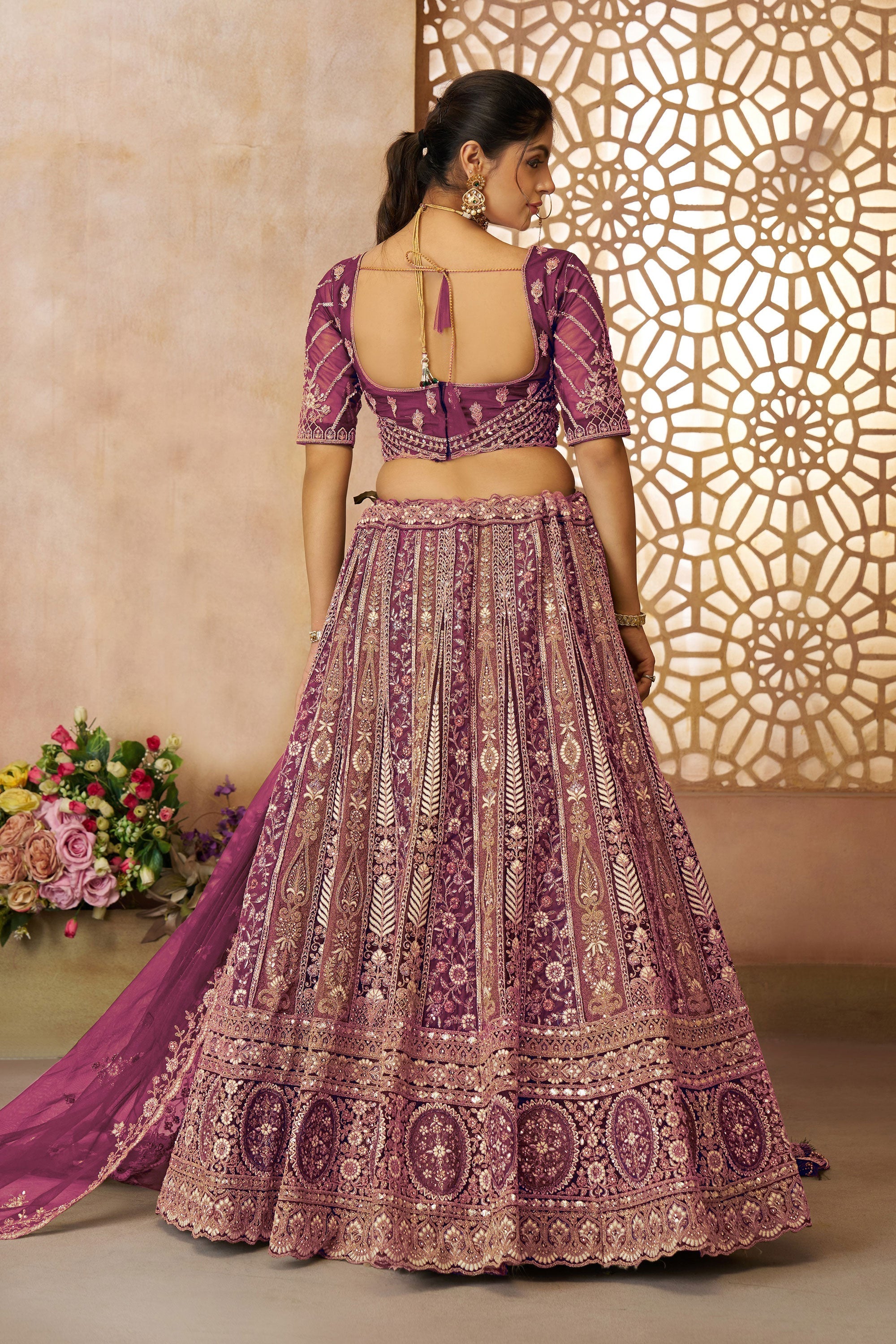 Purple Net Fabric Wedding Wear Lehenga Choli