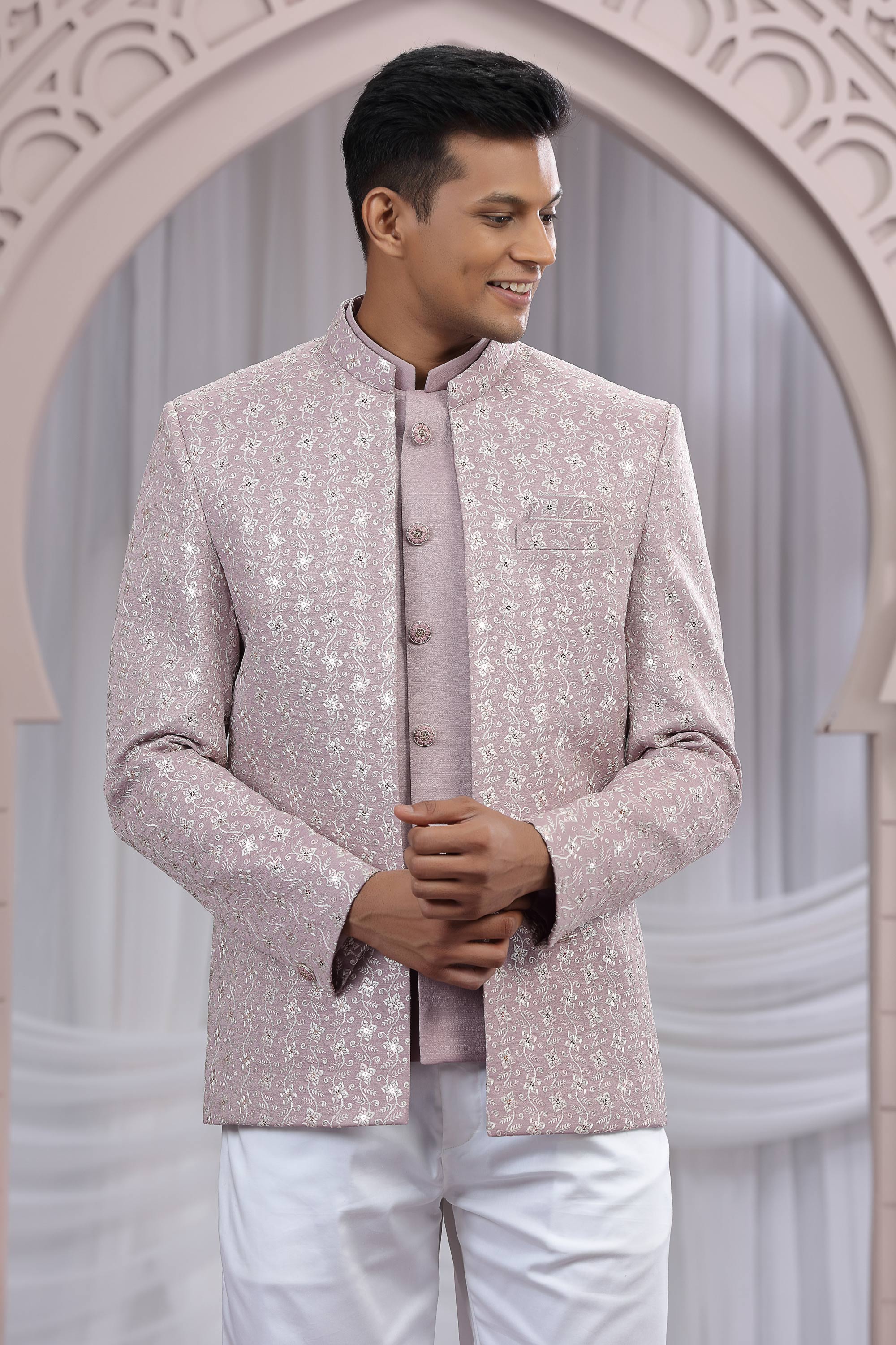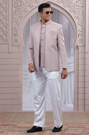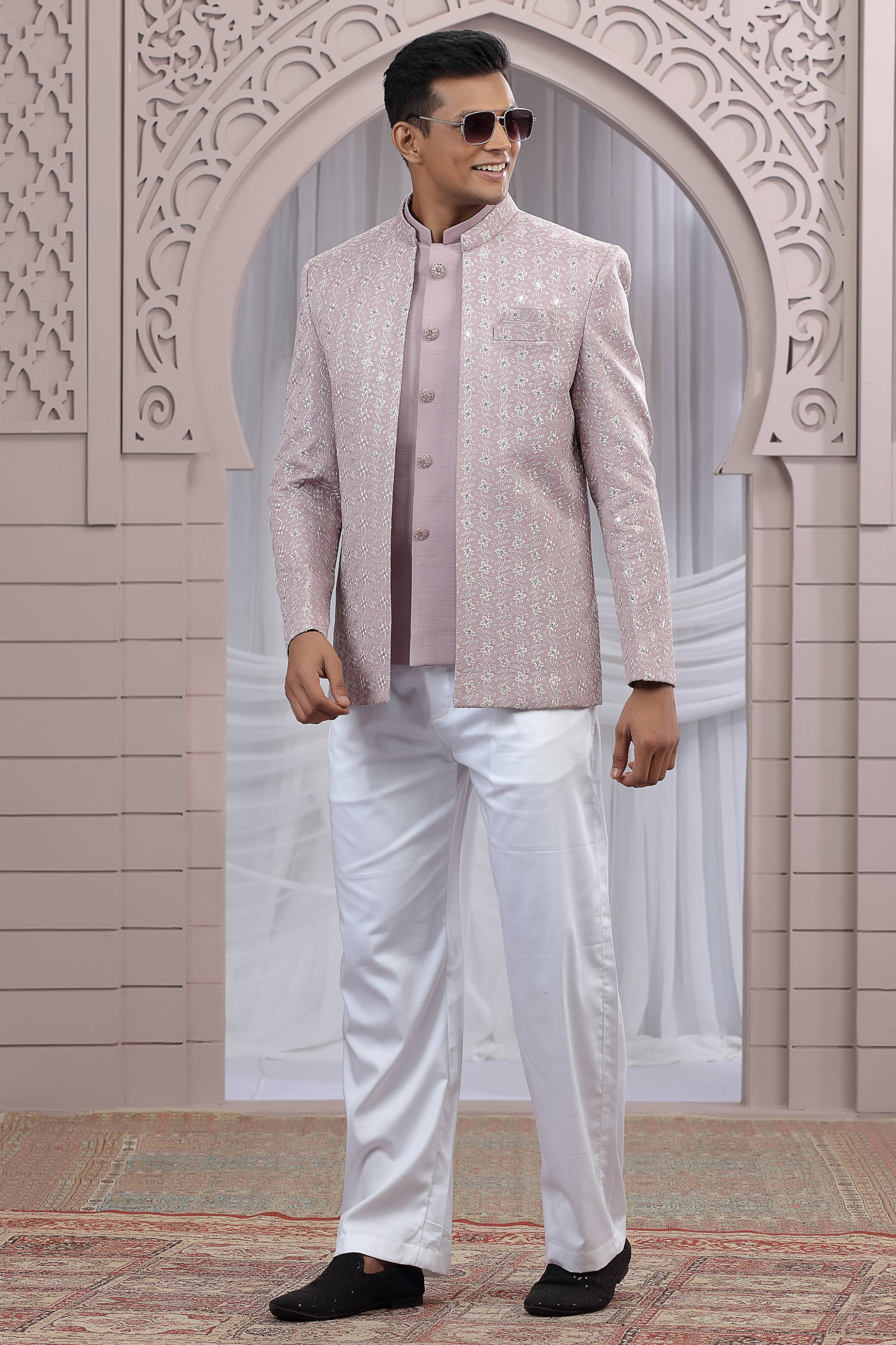 Art Silk Pink Sangeet Wear Readymade Lovely Indo Western Jodhpuri Suit For Men
