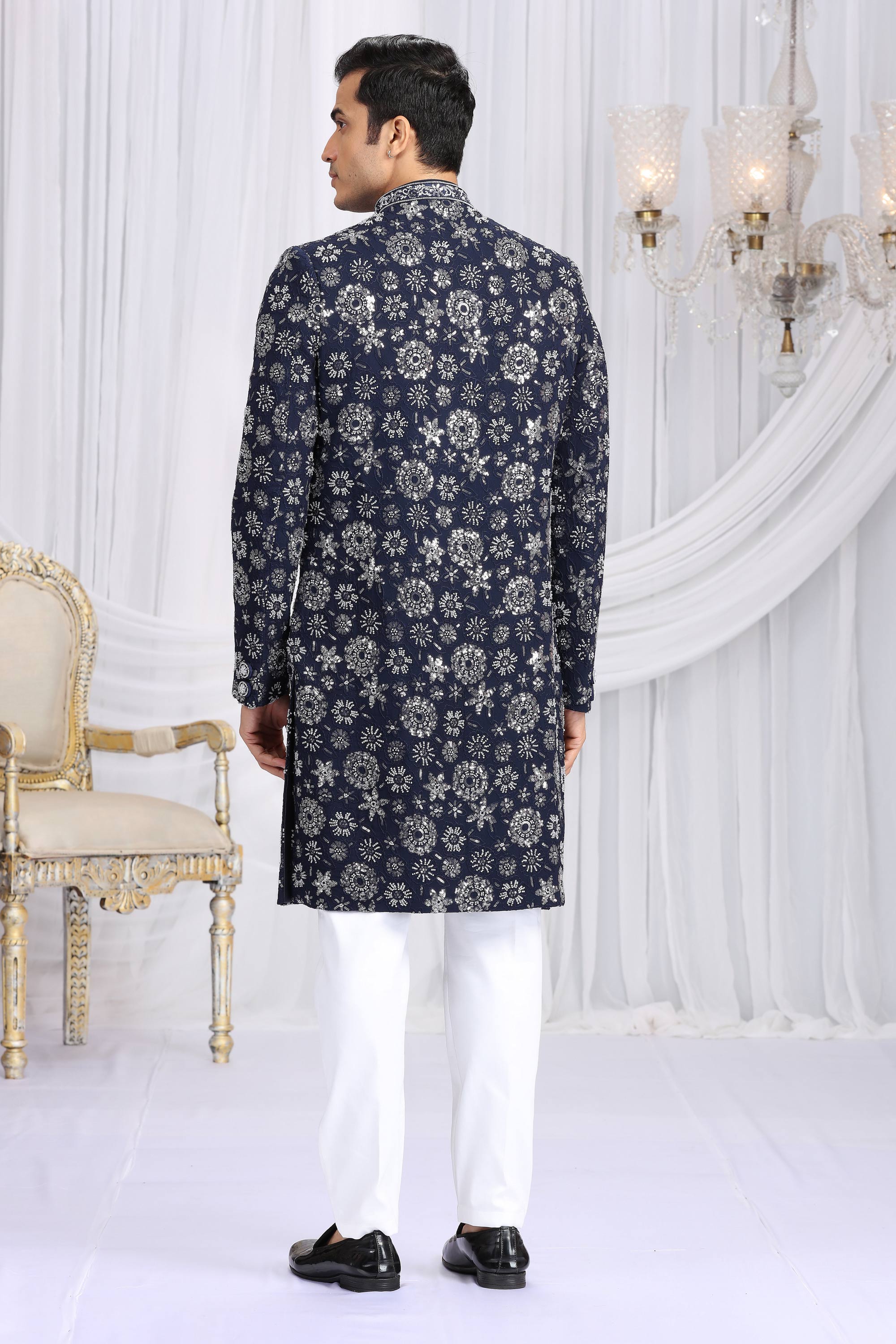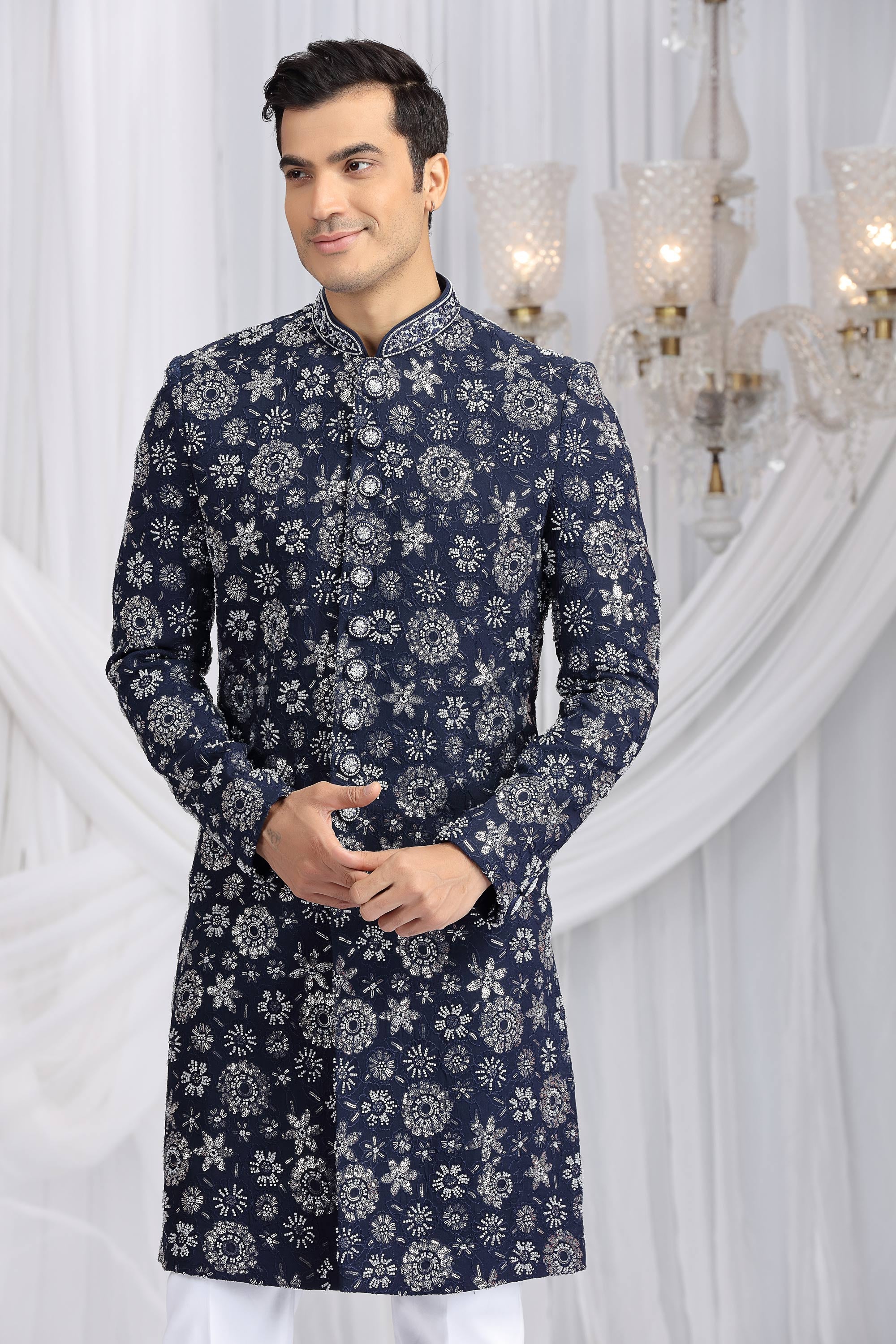 Make an impression with this Designer Indo Western outfit, specially crafted with detailed computer thread work for men attending weddings and cultural events. This readymade set comes complete with an intricately designed Indo Western coat and tailored Aligadhi pants, combining style and convenience. Lightweight and comfortable, this attire keeps you looking sharp and festive without sacrificing ease of wear. Its flawless combination of timeless design and modern sophistication makes it a versatile choice for both casual and formal functions. Stand apart in this iconic outfit and celebrate every moment with style.