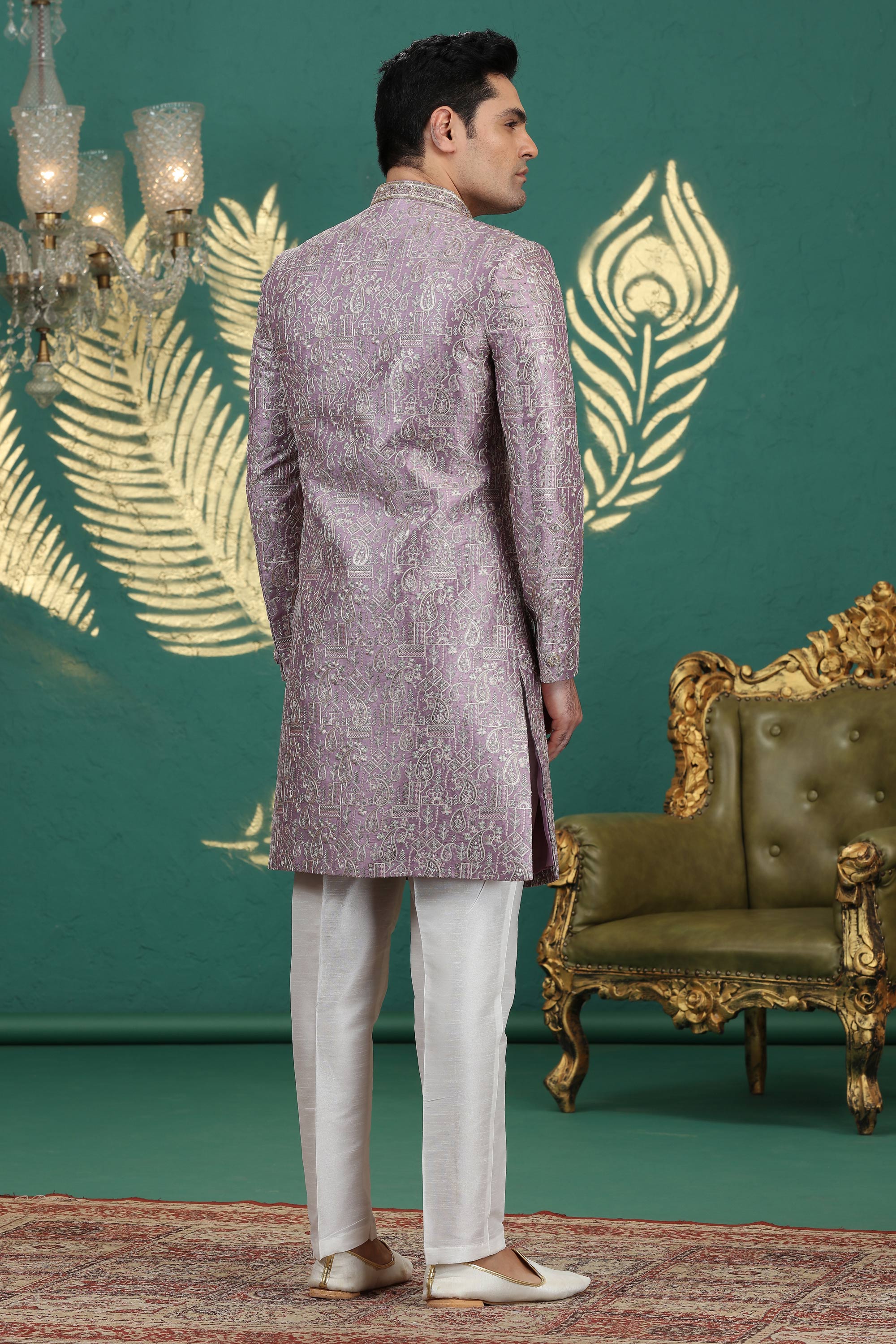 Lavender Wedding Wear Readymade Glamorous Sherwani For Men In Art Silk Fabric