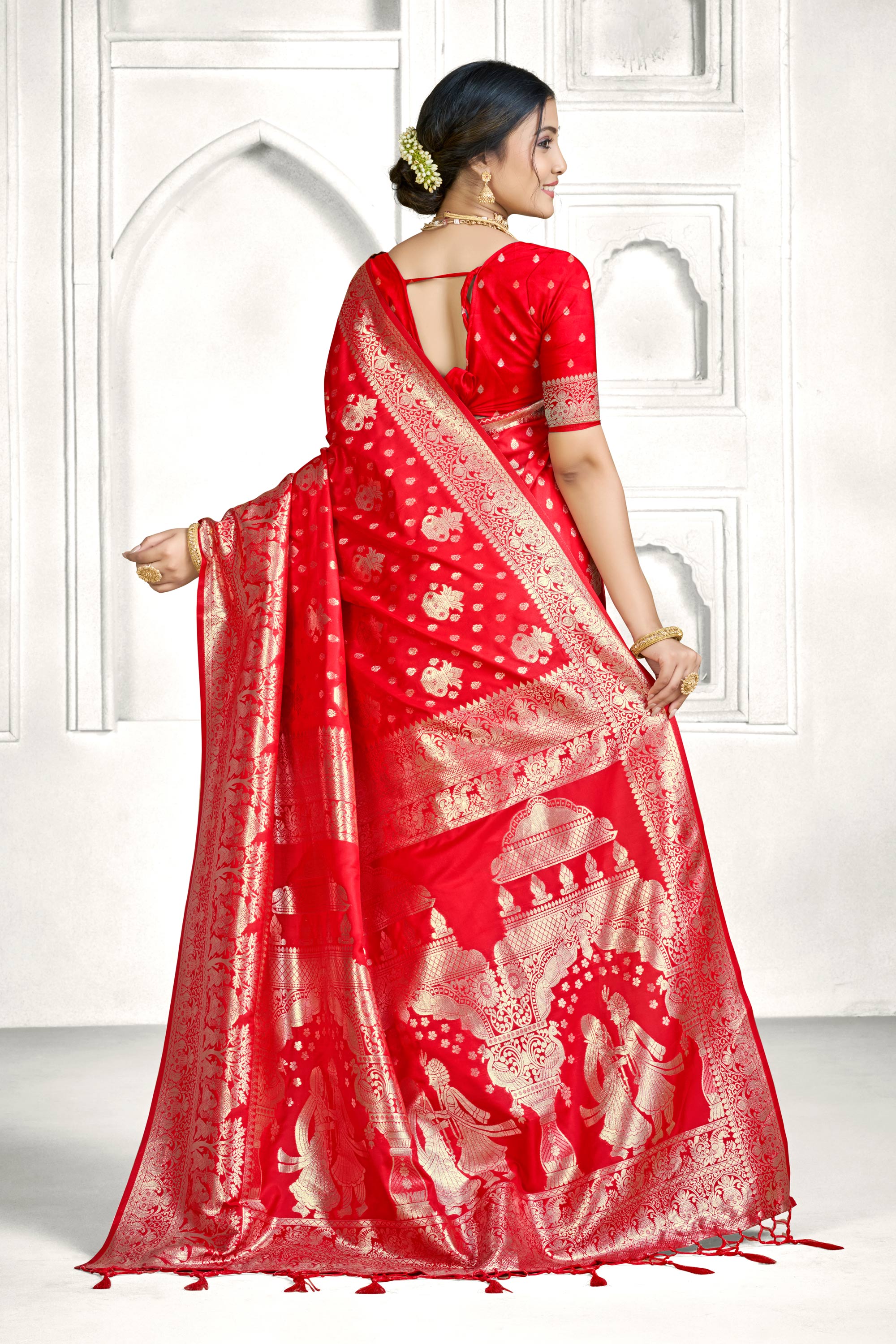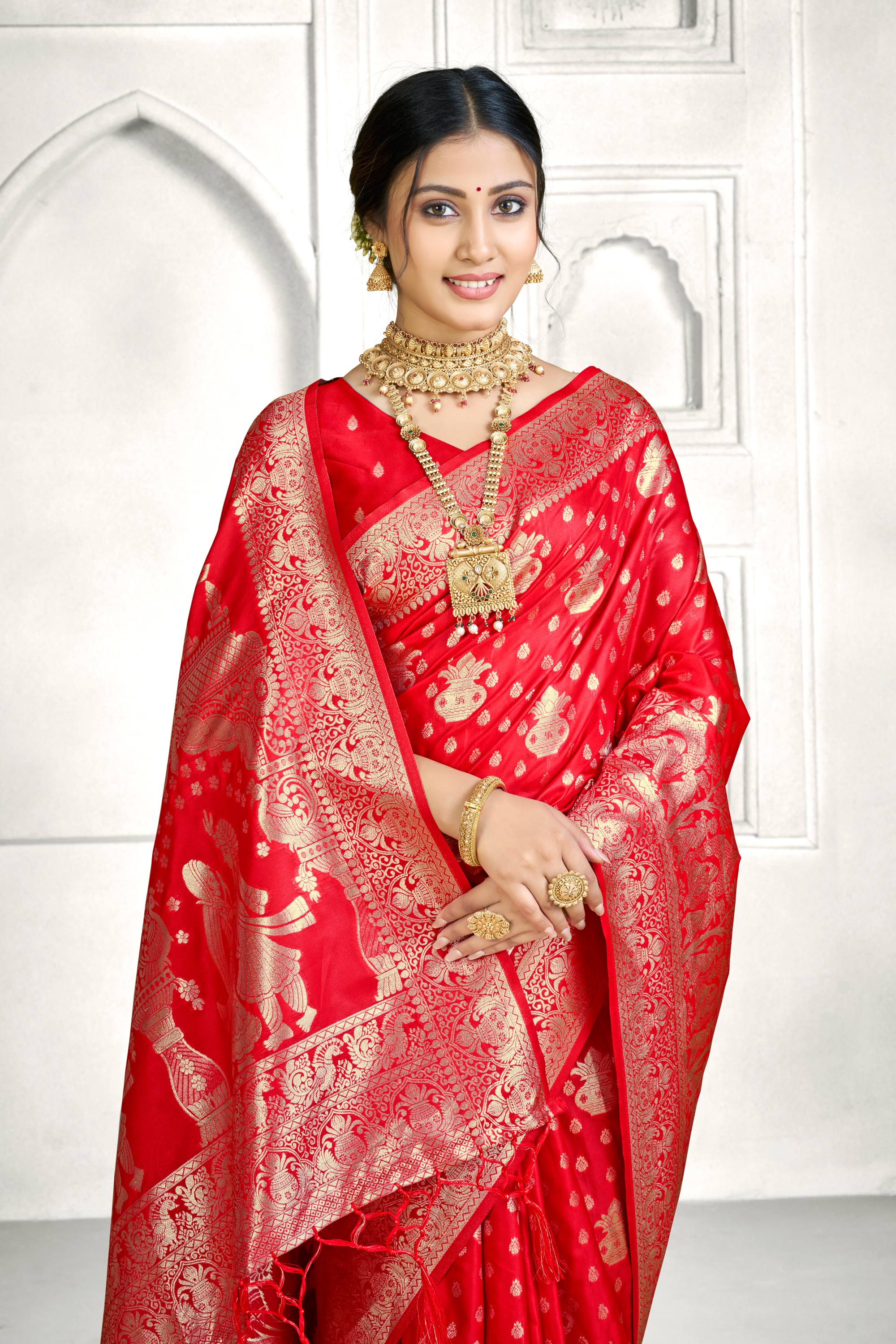 Red Function Wear Art Silk Weaving Work Traditional Silk Saree