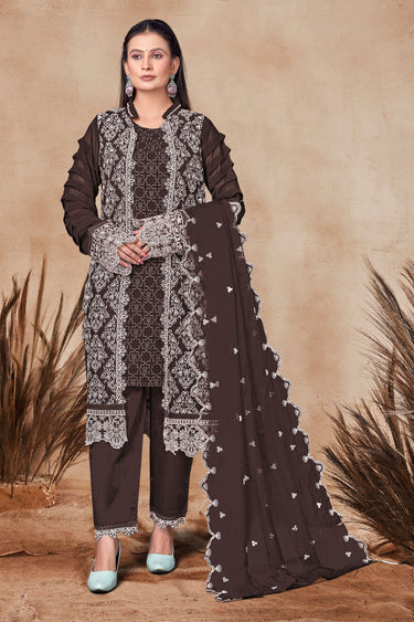 Attractive Brown Georgette Embroidered Readymade Pakistani Style Suit