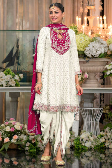 Chinon Fabric White Color Riveting Readymade Patiala Suit