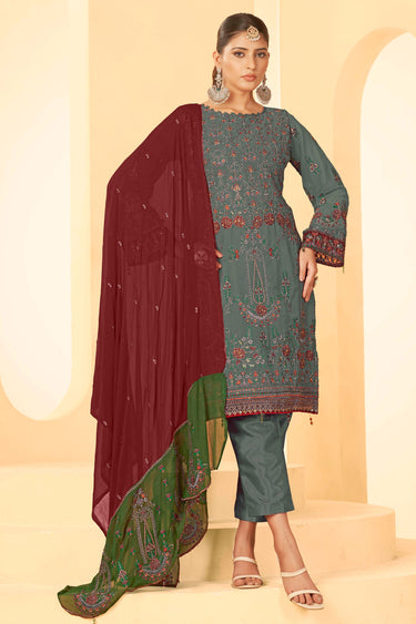 Embrace elegance and sophistication with our stunning Pakistani Replica Suit, crafted with exquisite Georgette fabric. Adorned with intricate embroidery work, this suit is a true masterpiece, perfect for those special occasions and parties where you want to make a lasting impression.