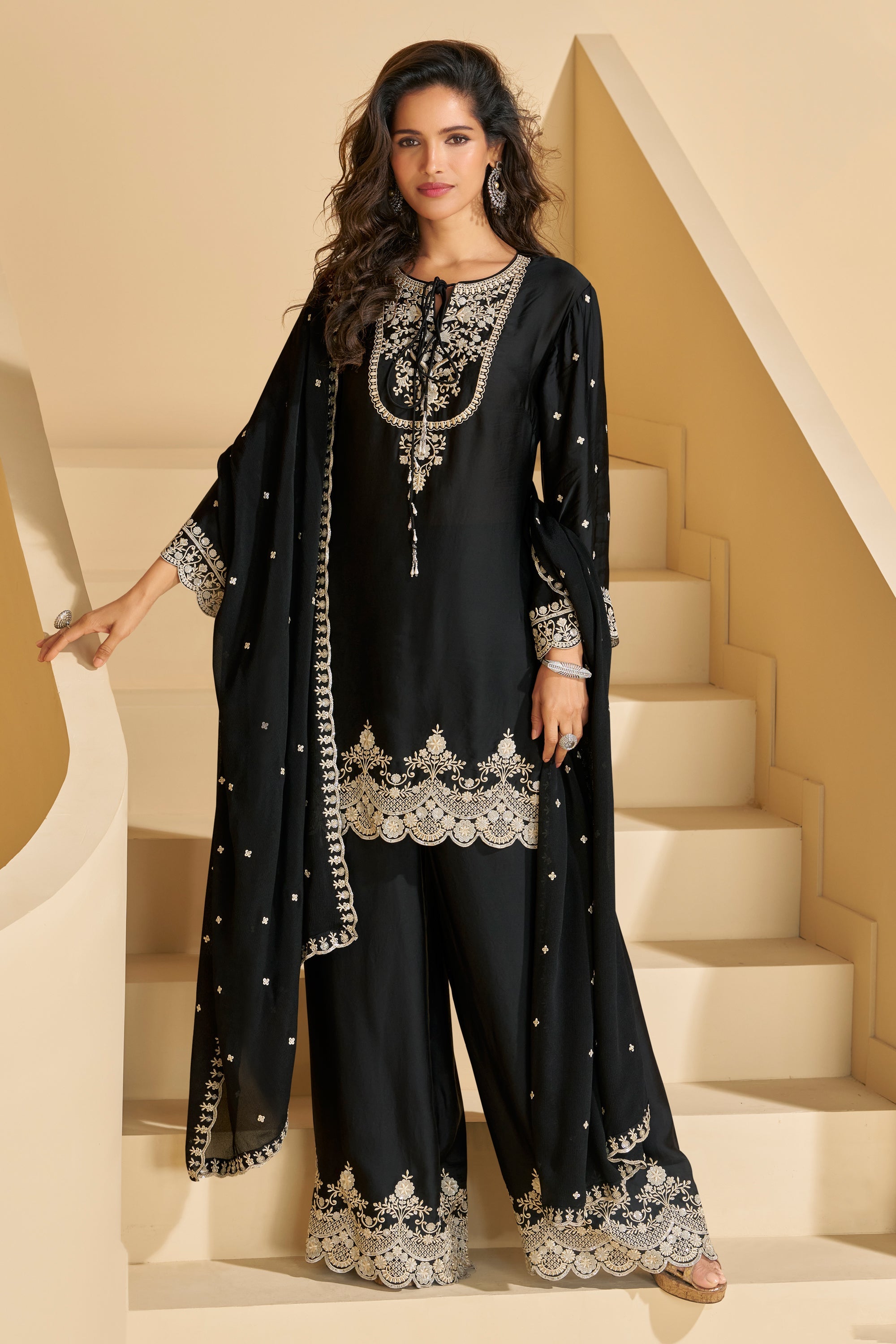 Embroidered Chinon Silk Readymade Palazzo Suit