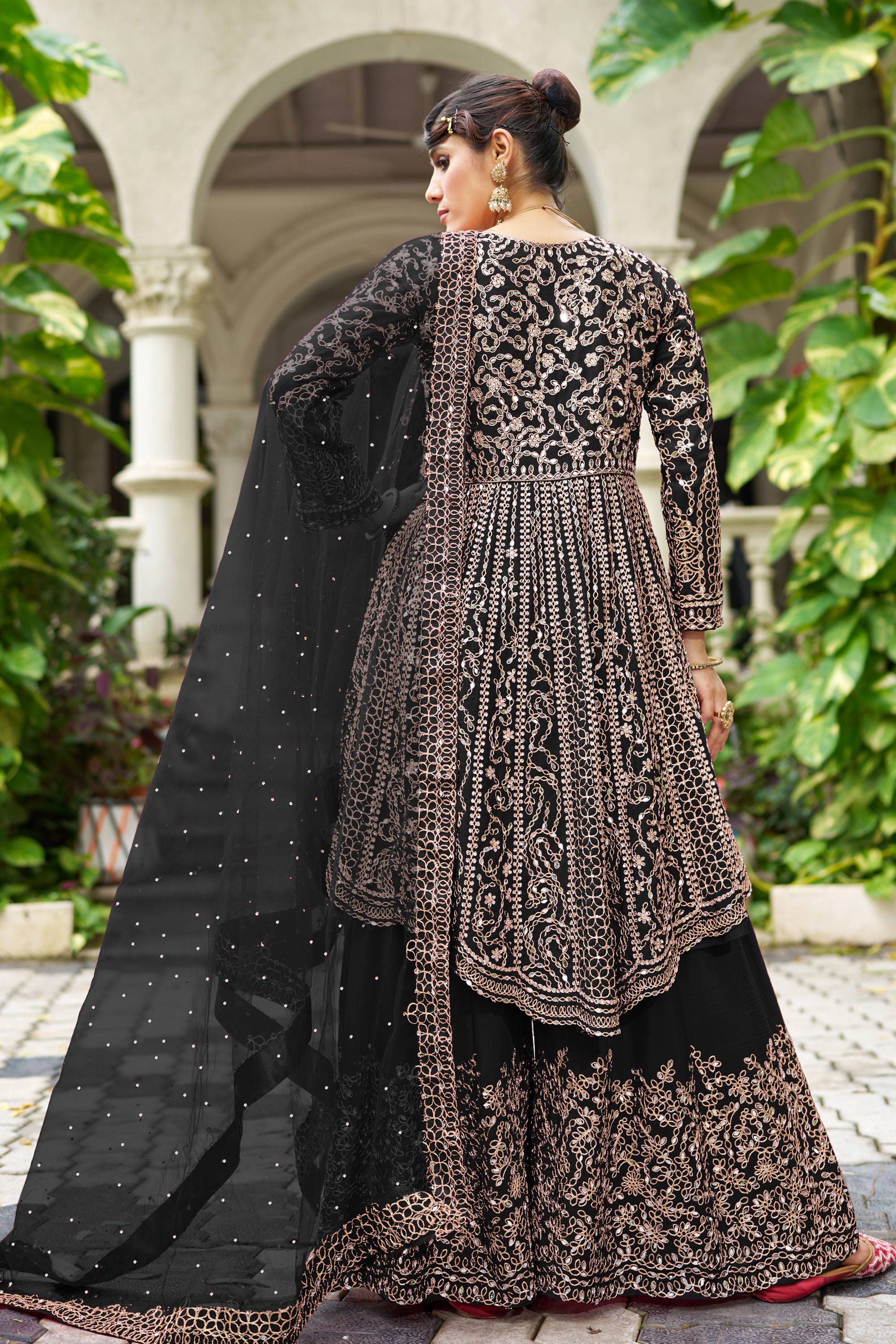 Black Wedding Wear Chinon Embroidered Readymade Palazzo Suit