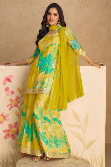 Vartika Singh Classic Green Color Palazzo Suit In Chinon Fabric