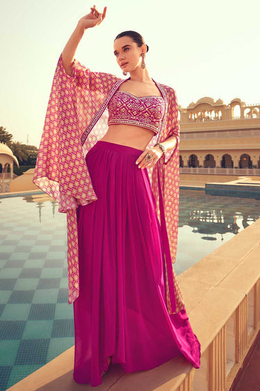 Eugeniya Belousova Chinon Fabric Readymade Rani Color Lehenga Choli With Jacket